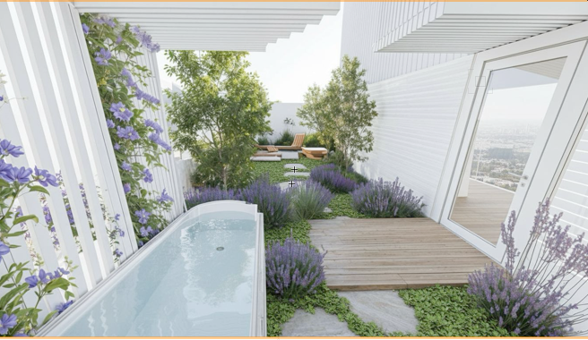 fix bath water edge to be smooth add a lady in the bath facing towards the back