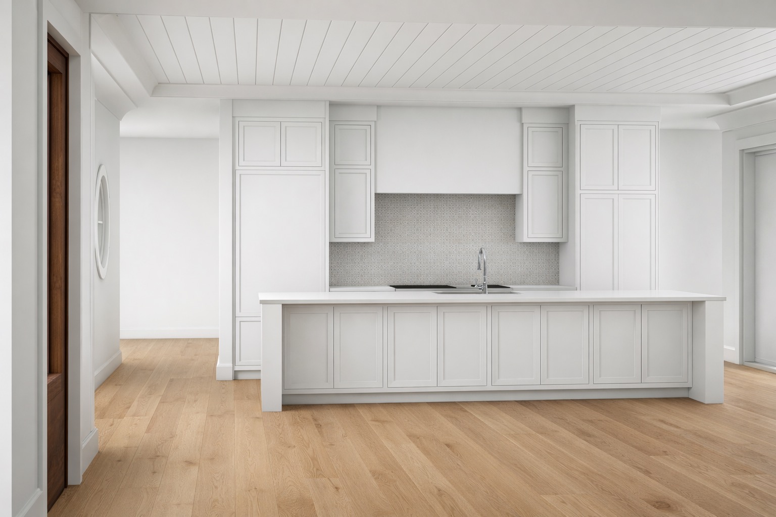 change the kitchen island to white oak add 4 of the fourhands albeline counter stool at the island