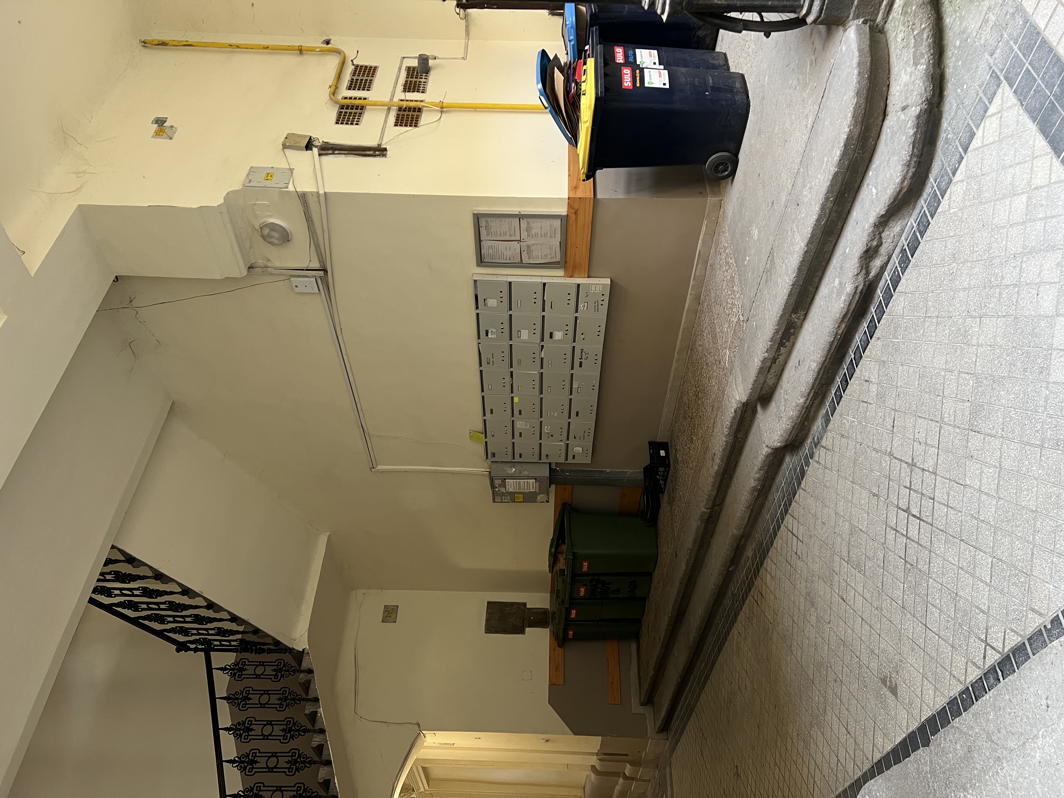 remove wastebins and remove post boxes from the wall keep everything else as is