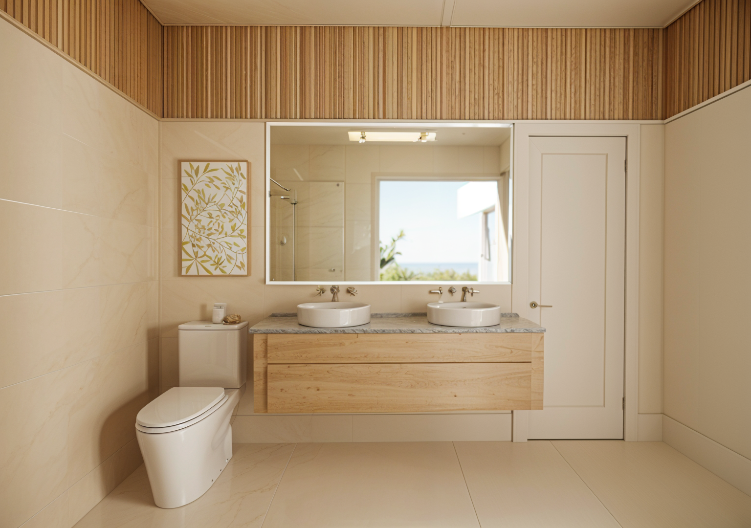 make image look as realistic as possible make the marble material look more like a travertine change the floor back to the last material and make the mirror darker