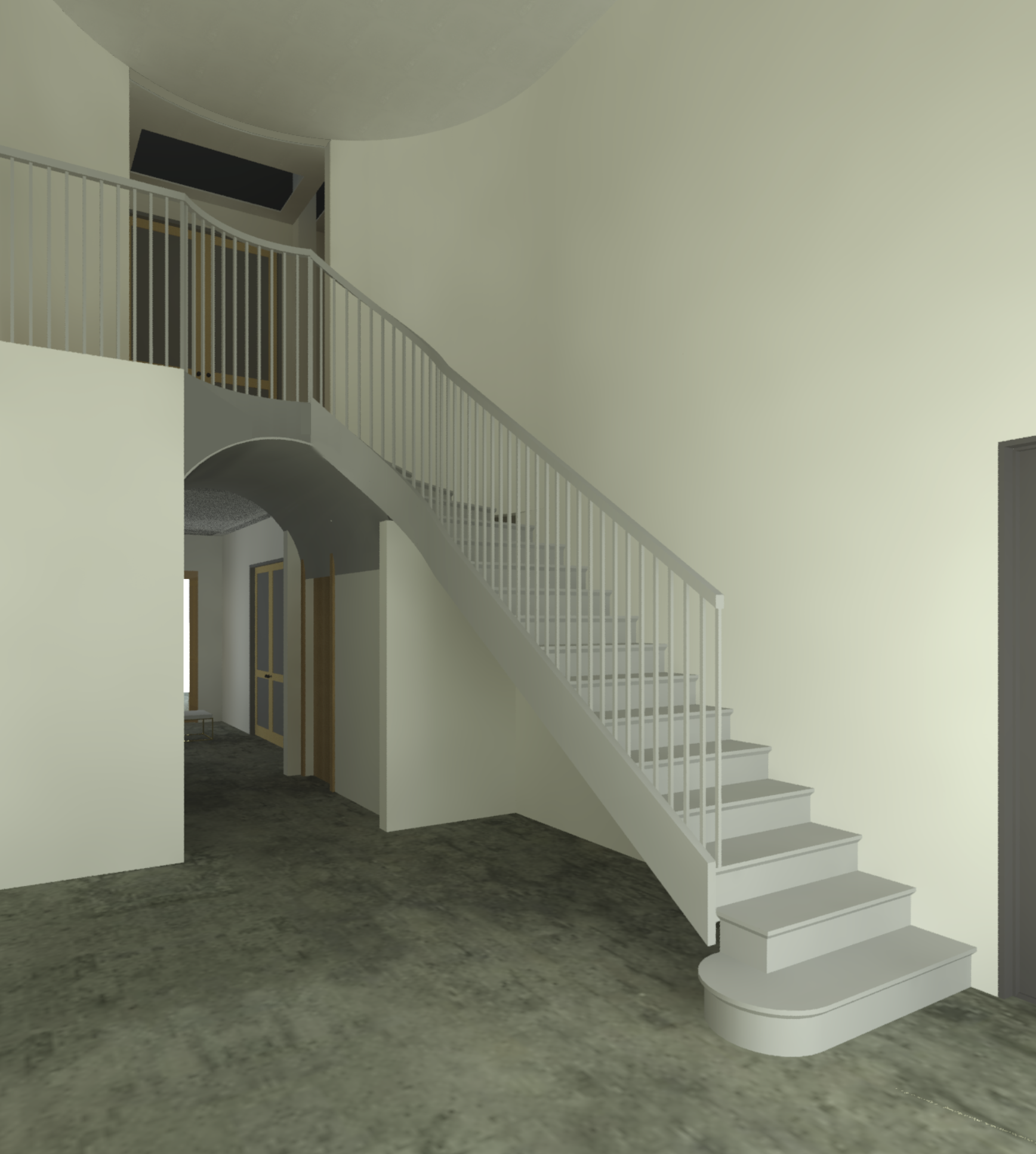 classical interior shot oak floors oak stair treads white walls skylight upstairs architecture