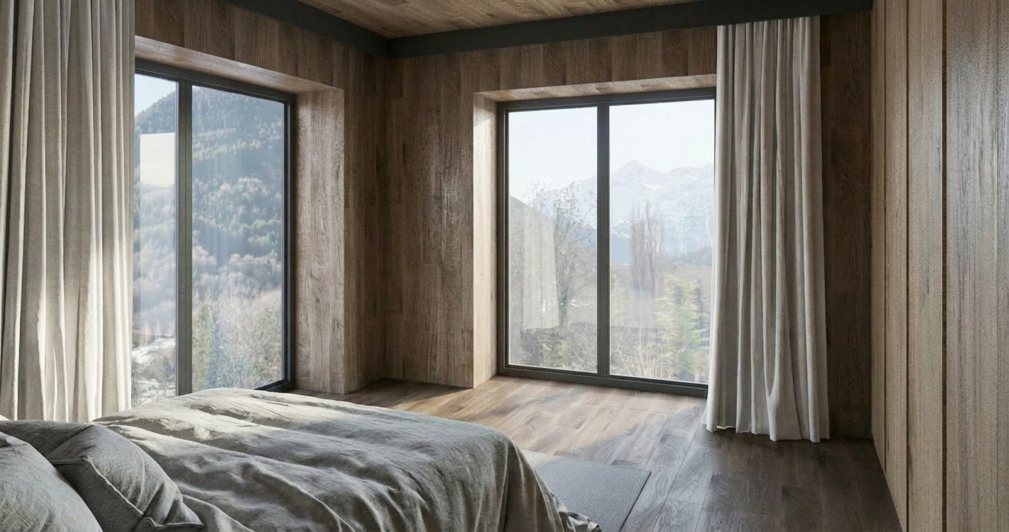 no modifiques texturas ni colores unicamente a ade una butaca en la esquina entre las dos ventanas