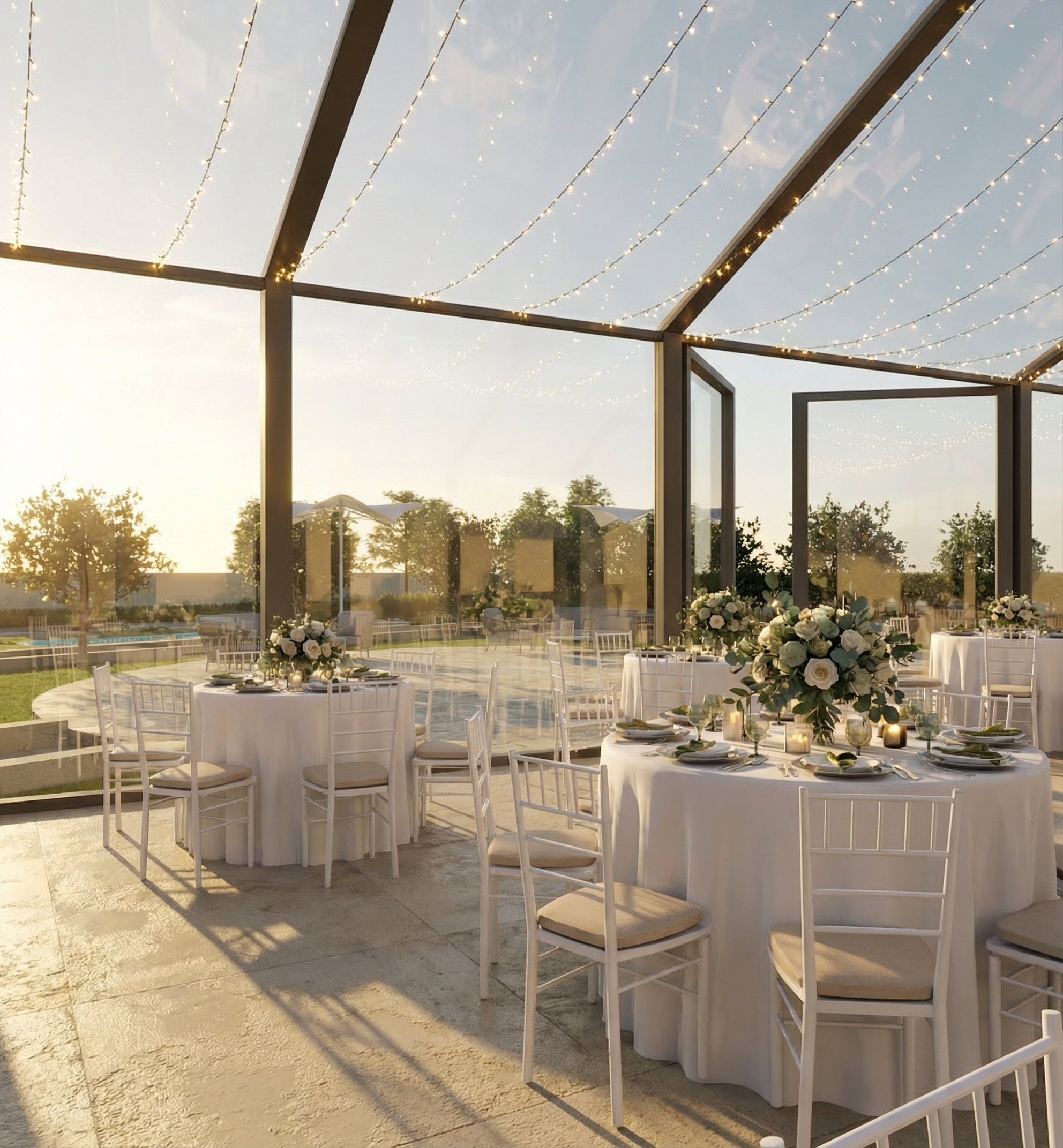 instead of glass doors make it an entrance to another room the flowers should be twice as big greener and the light outside should let in yellow sunset and the refrigerator should be black