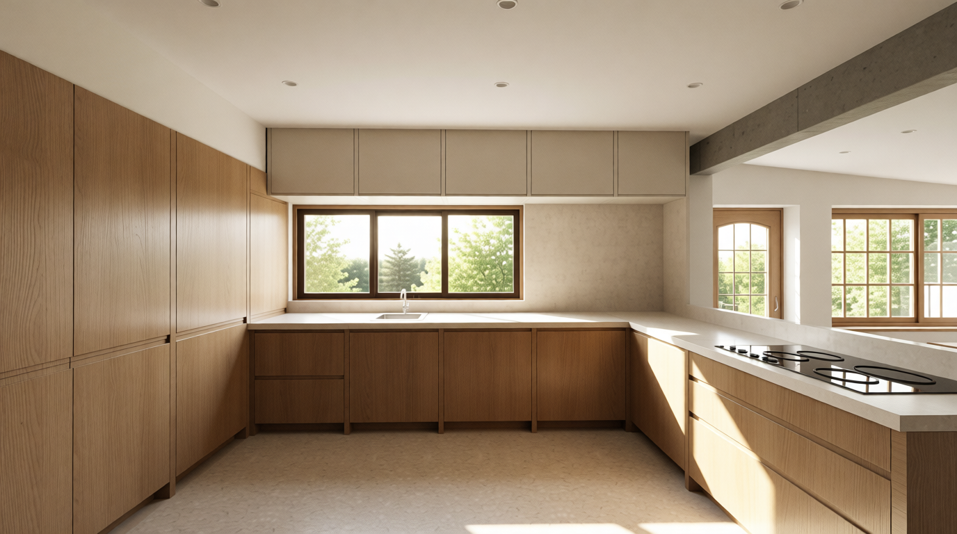 change backsplash to large zelige subway tile and delete all floor rugs in the front and back and delete dish rack on the counter