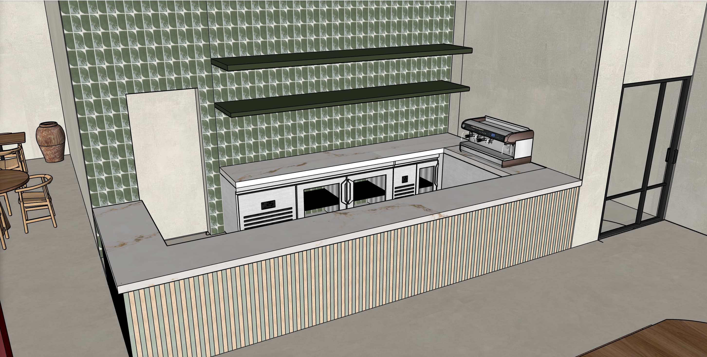 haz una imagen realista a ade elementos t picos en una barra de cafeter a pero con estilo wabisabi