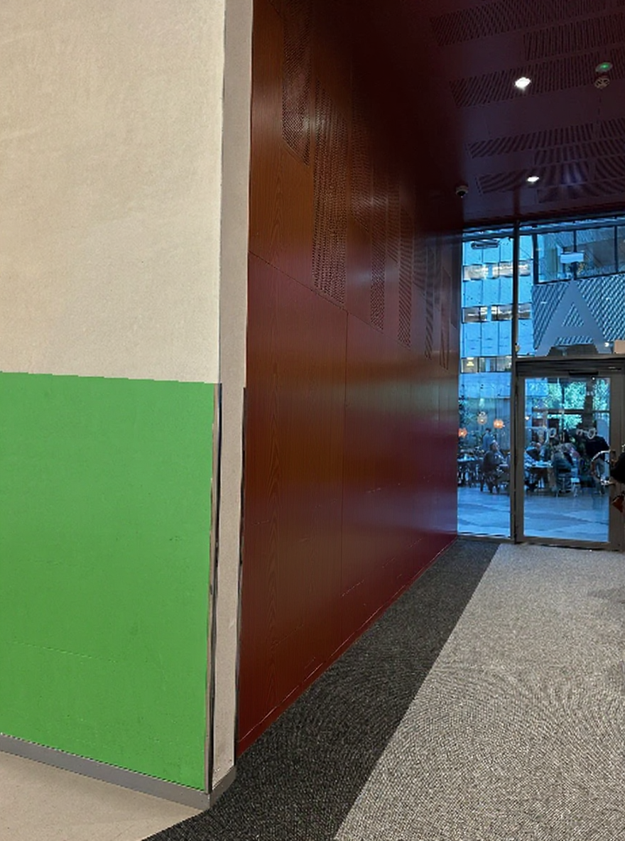 adapt this photo to the reference photo make it modern use beige white and wood add lights to the ceiling add leds too add a bigger rug to the bed change the sofa too