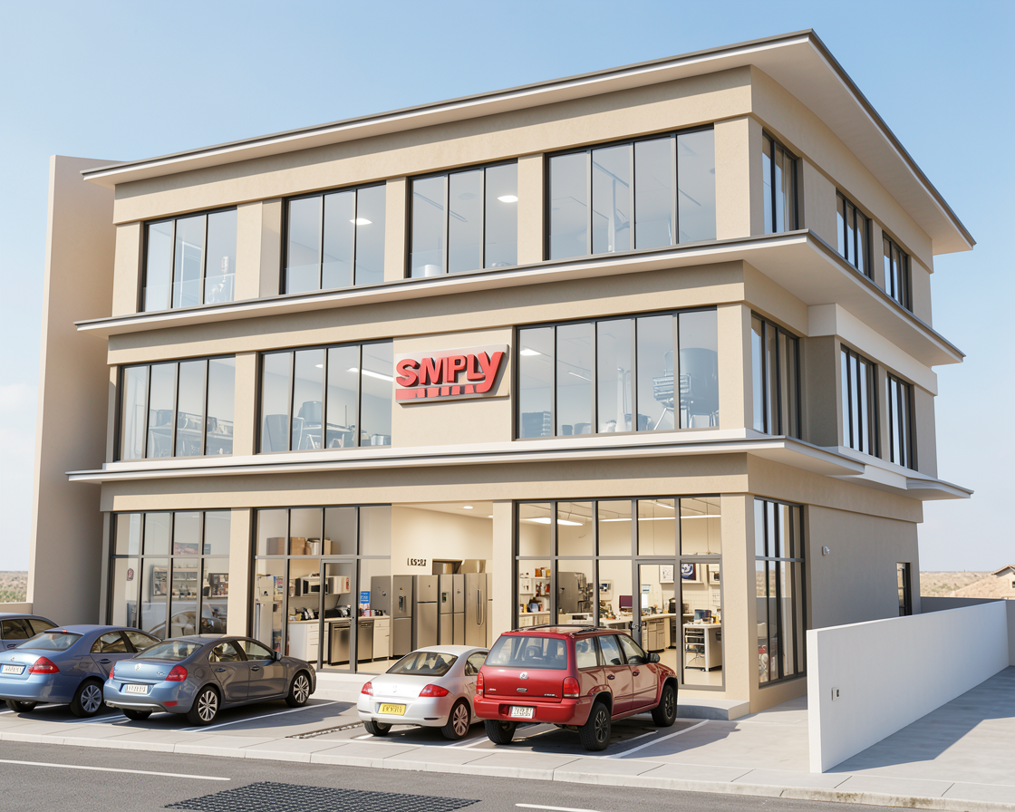 perspective shot render a modern kitchen with a chic and elegant atmosphere use a combination of soft white for the cabinets and walls and introduce a deep navy blue for the central island and feature wall the countertops should have a pristine white marble finish enhance the ambience with warm soft lighting that gently illuminates the space the wooden floor should have a rich dark walnut tone adding depth and warmth to the room include a large tv screen displaying a serene cosmic scene in cool blue hues the overall mood should be contemporary luxurious and inviting