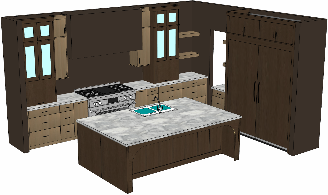 do not change the cabinets in any way preserve the exact cabinet colors materials finishes dimensions door and drawer styles hardware spacing alignment and all geometry exactly as shown do not alter the countertop shape backsplash appliances flooring lighting fixtures or wall structure only remove the construction materials clutter and mess from the scene clean the room and make it look finished and staged add a few simple tasteful home accessories appropriate for the style of the space but do not add or remove any furniture windows or architectural elements maintain the original lighting direction and realism enhance clarity and polish the photo while keeping the cabinetry and room design completely unchanged do not alter the lighting to keep the cabinet colors as they are in the image do not add lighting to the glass cabinet doors keep the image as is just change the walls to light grey and make the hood white