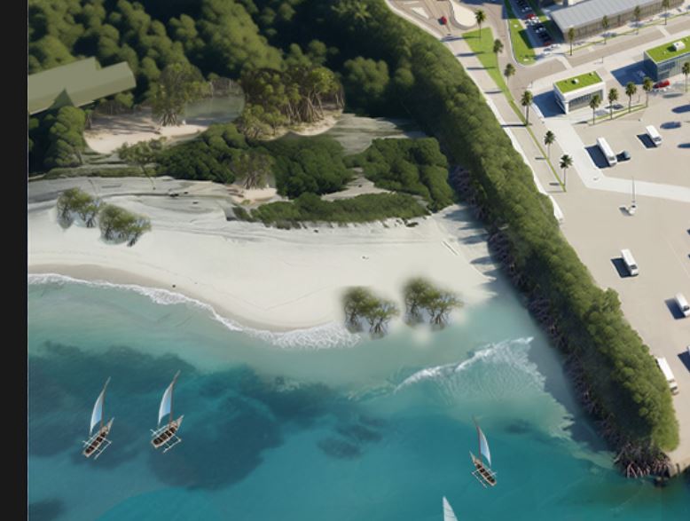 mangrove trees dotted around this beach