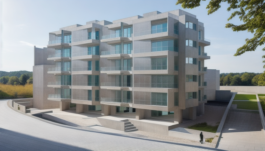 sustainable design exterior shot please add plants on the balconies architecture