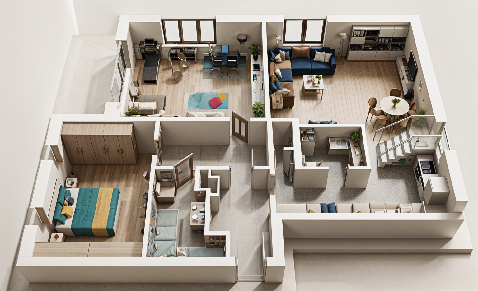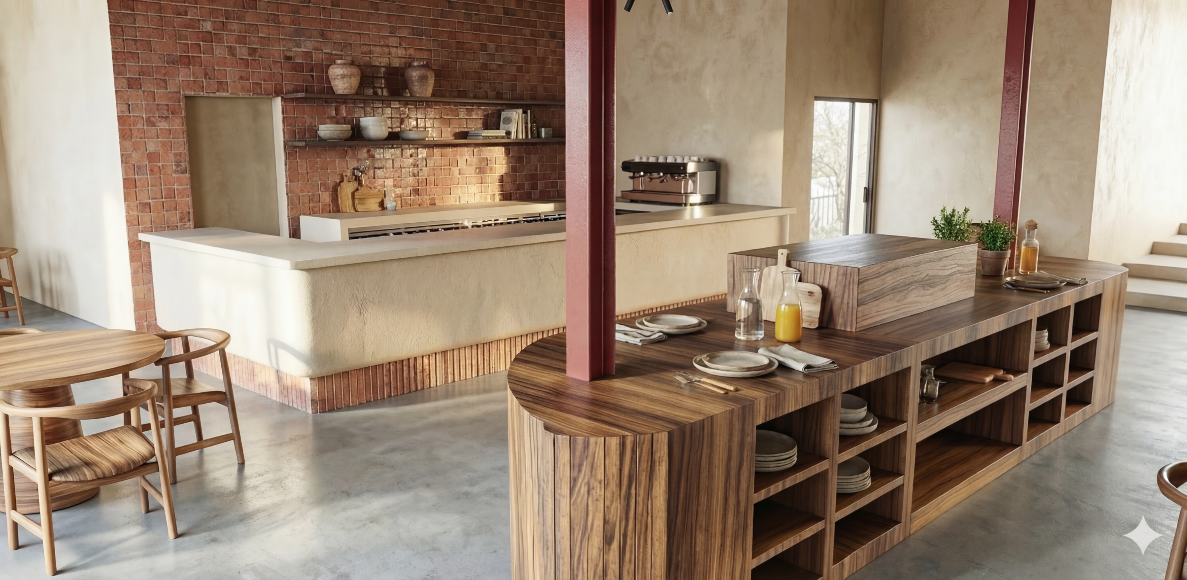 a ade elementos de comida en la mesa central como fruta o magdalenas