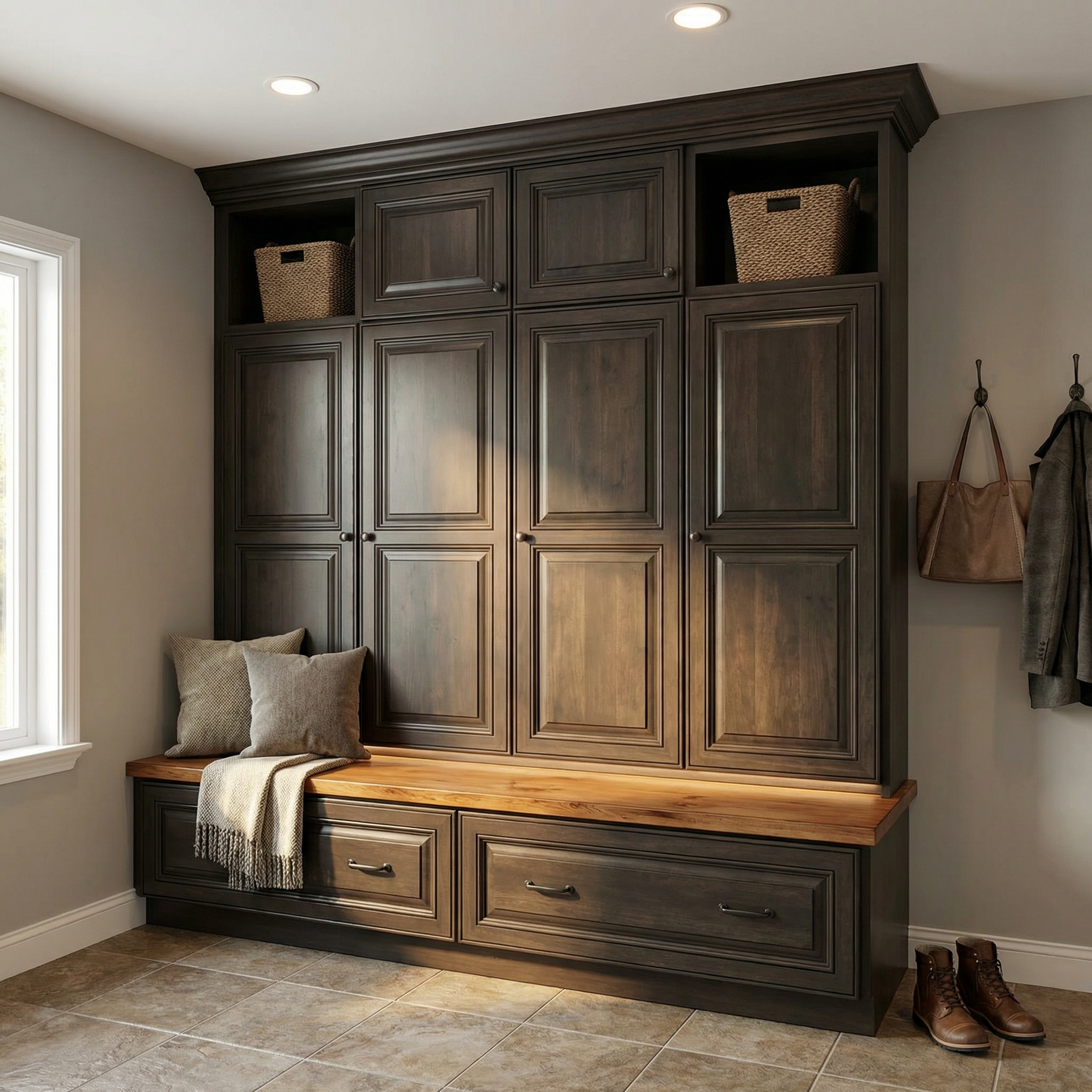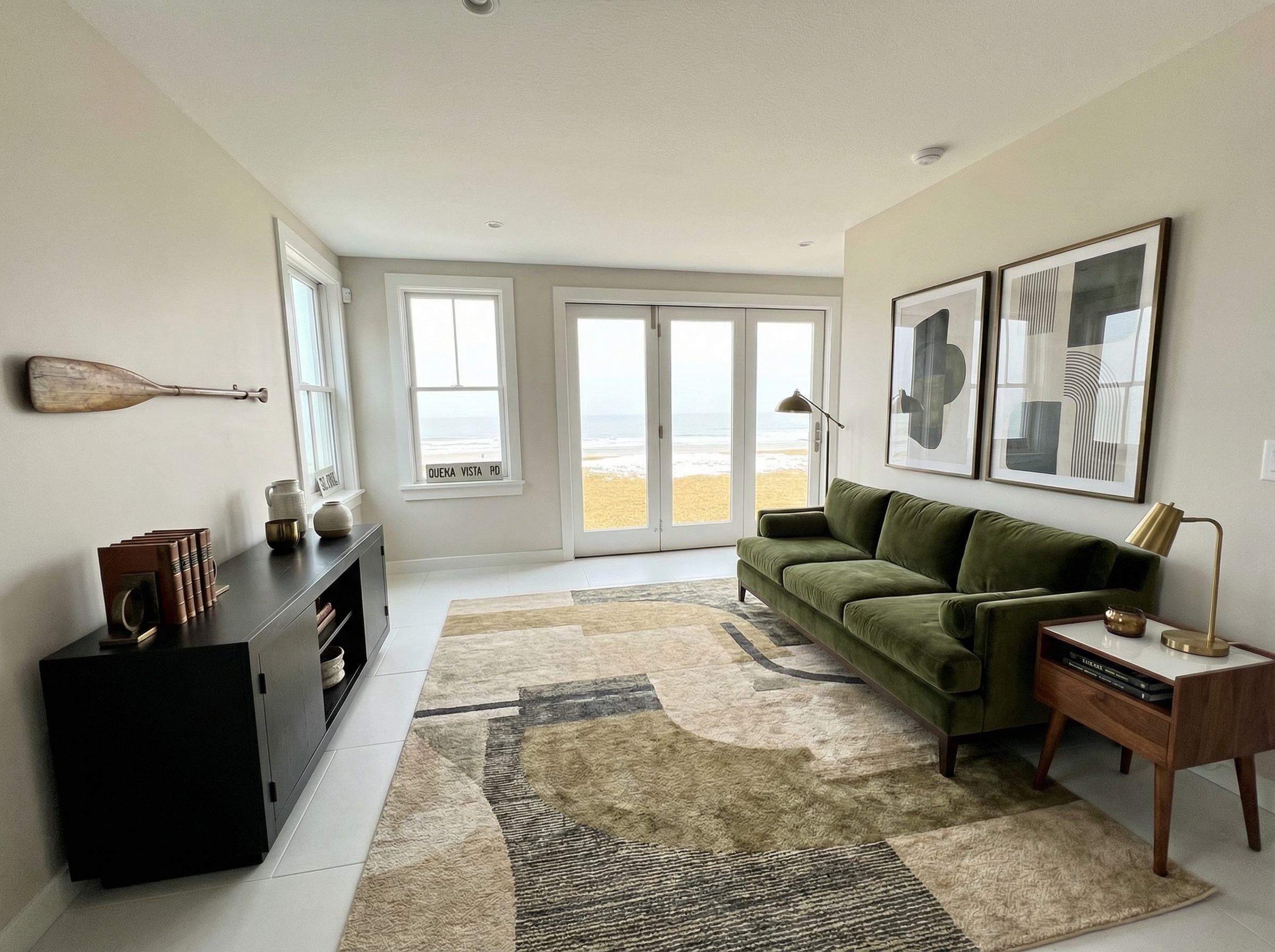 only add 4 wood beams on ceiling with same distance