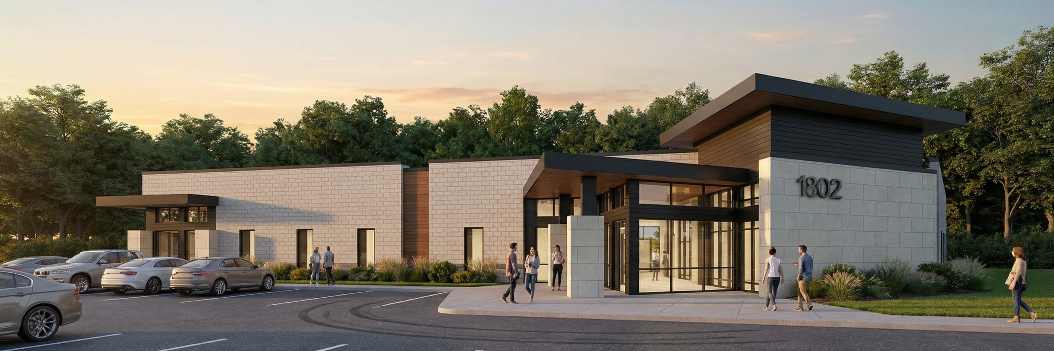 make realistic stage with decor wooded lot outside windows add can lighting modern rustic theme island and range hood to be painted grey countertops to be black granite with white veining
