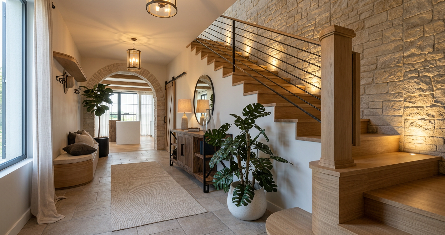 render this image realistically and add four people in the context