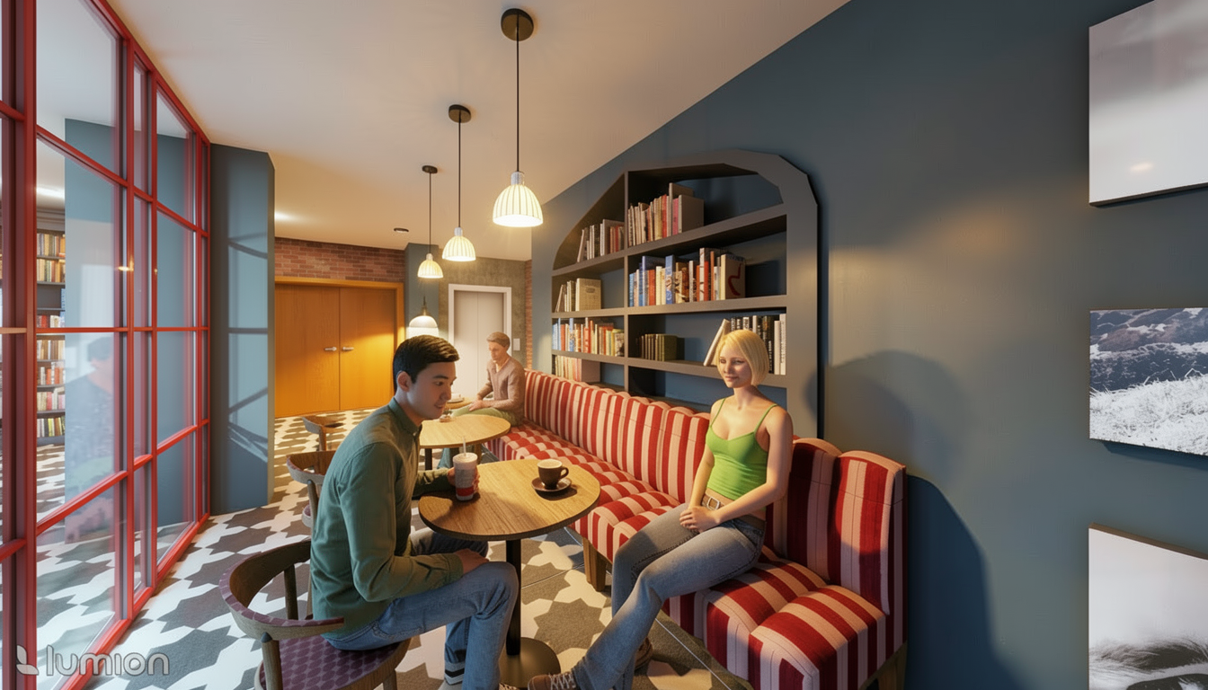 modern minimalist house with a distinct architectural style featuring a white facade large windows and a wooden front door surround the house with lush green grass and various tropical plants including palm trees the sky is clear with a soft radiant blue create a serene morning atmosphere with warm natural lighting that casts gentle shadows keep weatherboard cladding to external walls