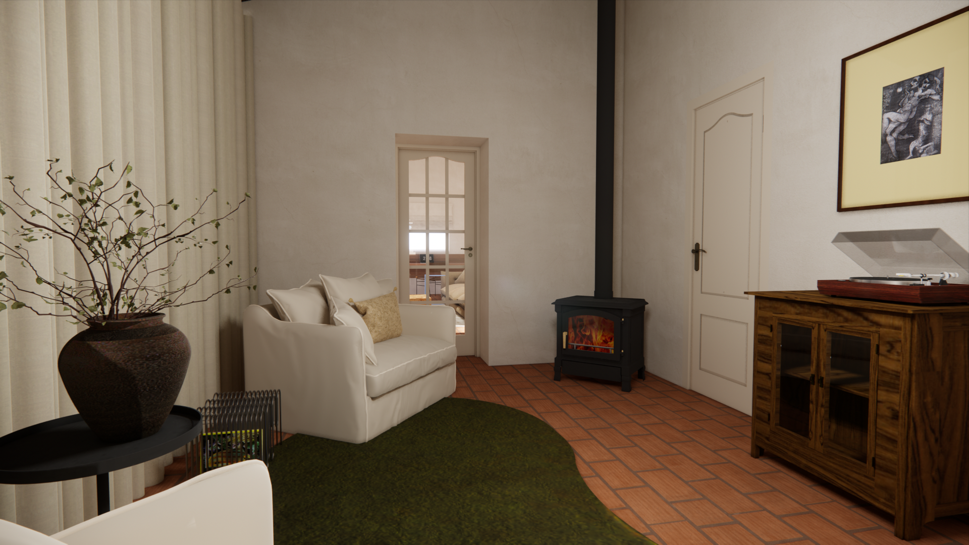 make realistic meditarian modern houd e opzet van mijn ontwerp aan de gordijnen niet doorschijnend wand er zit een wand achter