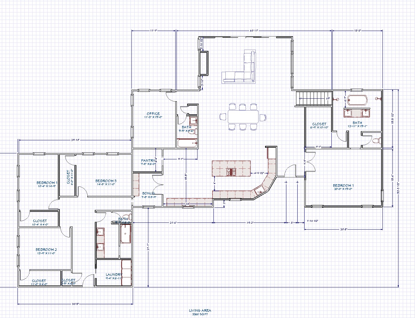 render this with tile in bathrooms hardwoods in every where else white and neutral paint colors modern farmhouse style stained cabinets in island with maybe a painted perimeter make it look luxury