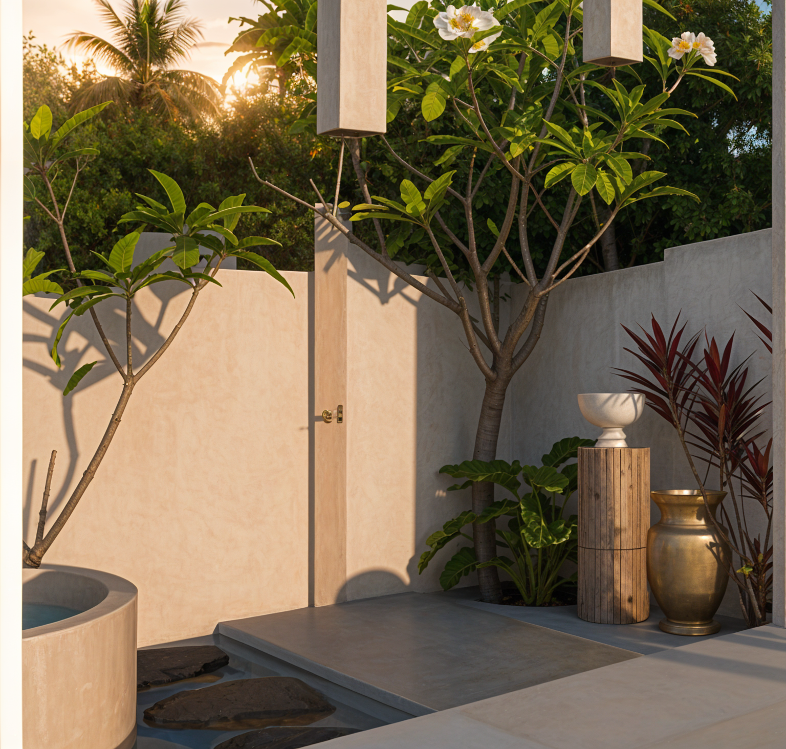 soft sunlight with downlight on lot of light wool sofa and terrazzo round table