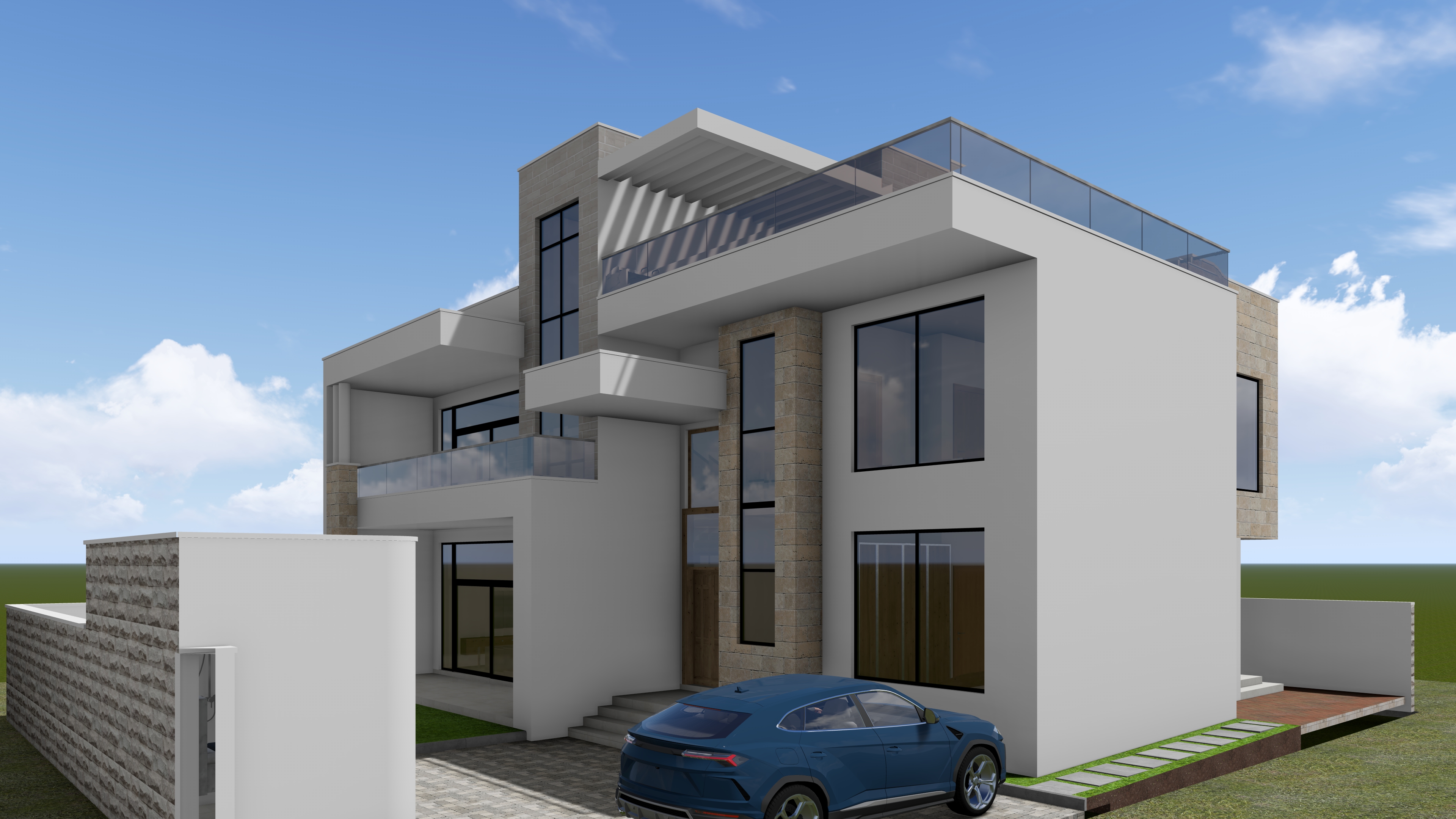 add very few trees and vegetation in background to give it context make house look lived in