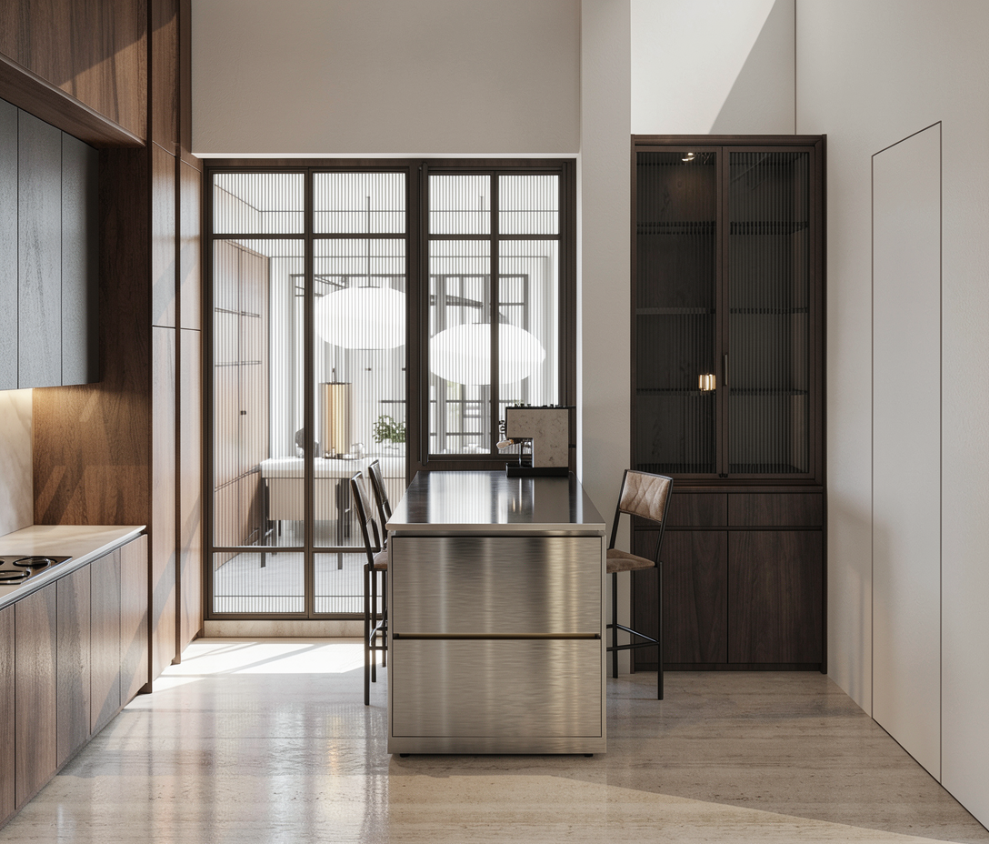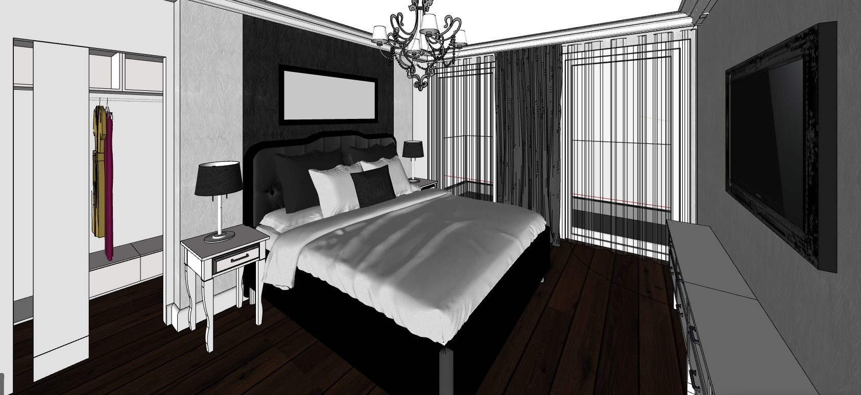 international style interior shot photorealistic interior visualization of the room exactly as in the reference image keep all furniture layout proportions materials and colors completely unchanged no visible lines edges or artifacts from the 3d model fully realistic surfaces realistic textures on wood fabric metal and glass with natural reflections and shadows bright warm and inviting lighting soft natural light from windows plus light from the bedside lamp and ceiling lamp evenly illuminating the room enhanced overall brightness and subtle ambient glow to highlight depth materials and details high end interior design style photorealistic rendering visually rich and immersive clean elegant and cozy atmosphere do not alter the perspective camera angle or any elements in the scene architecture