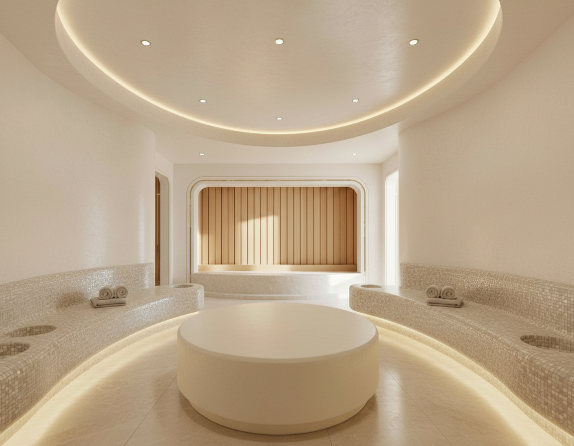 replace the brown wood panels in the rear of the room inside the arch with cast glass allowing soft shimmering light to stream through the window