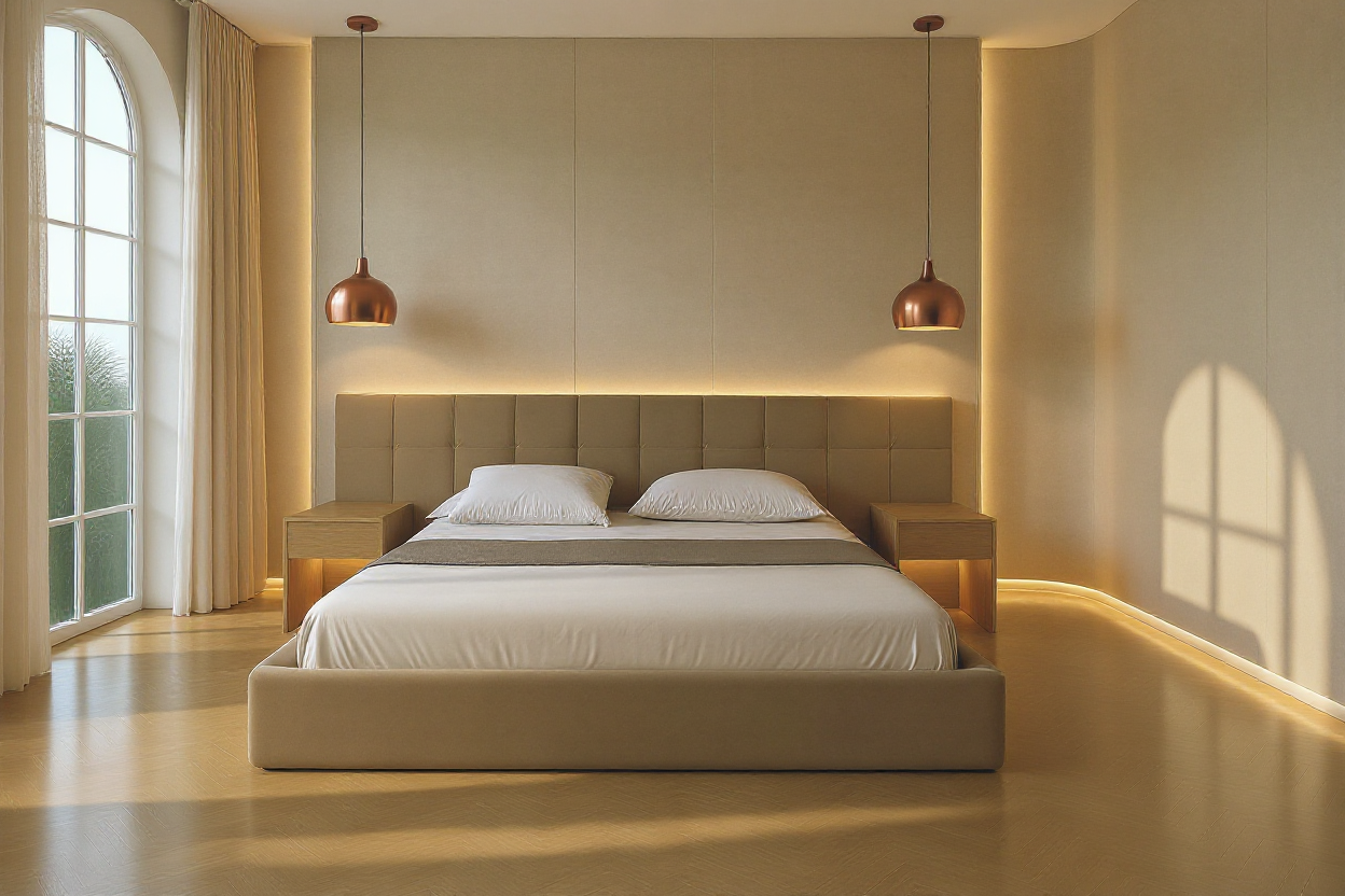 render a modern minimalist house with a sleek design use a light gray tone for the walls with subtle textures to add depth the roof should be a deeper charcoal gray to provide contrast incorporate large clear glass windows framed in black for a contemporary look the porch area is covered with a teal roof supported by wooden beams in a natural oak finish create a warm welcoming ambiance with evening lighting casting soft glows on the pathways and entrance the lawn is lush and vibrant green complementing a red brick walkway that leads to the house the atmosphere should be serene and inviting capturing a peaceful evening in a modern suburban setting architecture