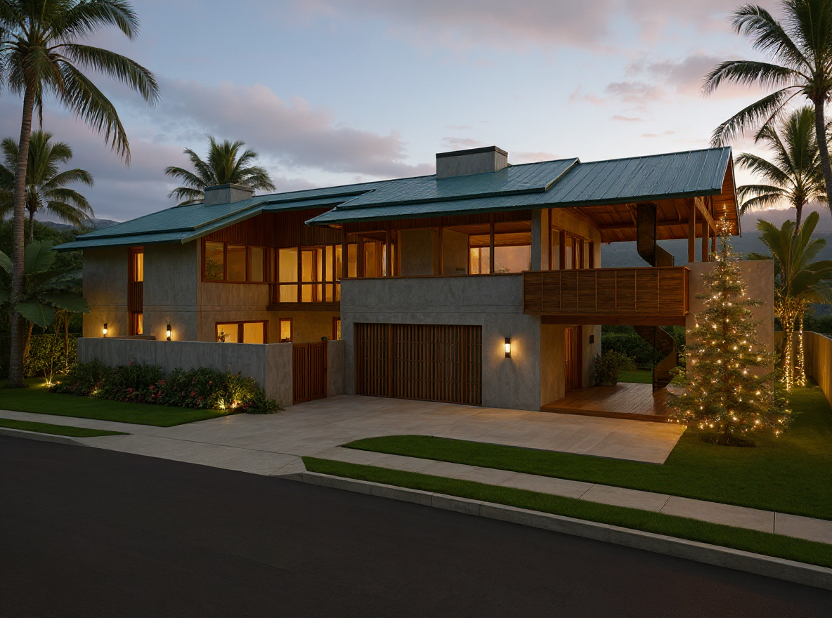 a modern house retain the exact structure and window arrangement patio columns rooflines foundation height and proportions exactly as shown in the reference image integrate into the terrain surround the property with a lush dense forest of mixed hardwoods add mid day golden sunlight subtle dappled highlights across the siding and grass create ultra realistic lighting crisp shadows detailed textures in the siding and glass reflections and an overcast sky render in hyper realistic architectural visualization quality 8k resolution set the house back a little more
