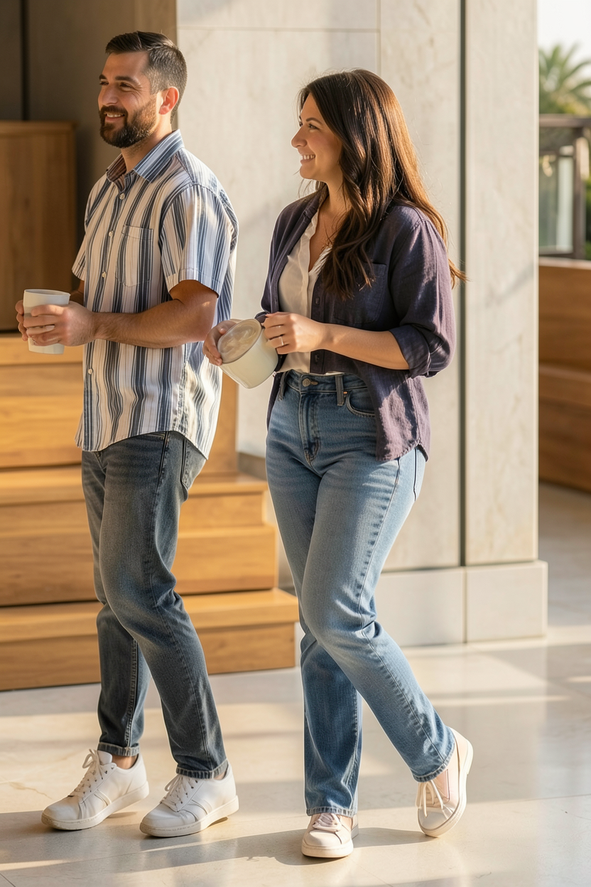 please make this photorealistic the perimeter cabinets are a white wood the island is a charcoal color the counter stools are backless and the countertops are white quartzite with soft black and grey veining the countertop under the floating shelves should be black the backsplash by the floating shelves is a beveled white elongated fish scale pattern the backsplash by the sink is the same material as the countertop the wood around the windows is oak please add a backyard and greenery through the windows the pendants are back shades with chrome details around the shade