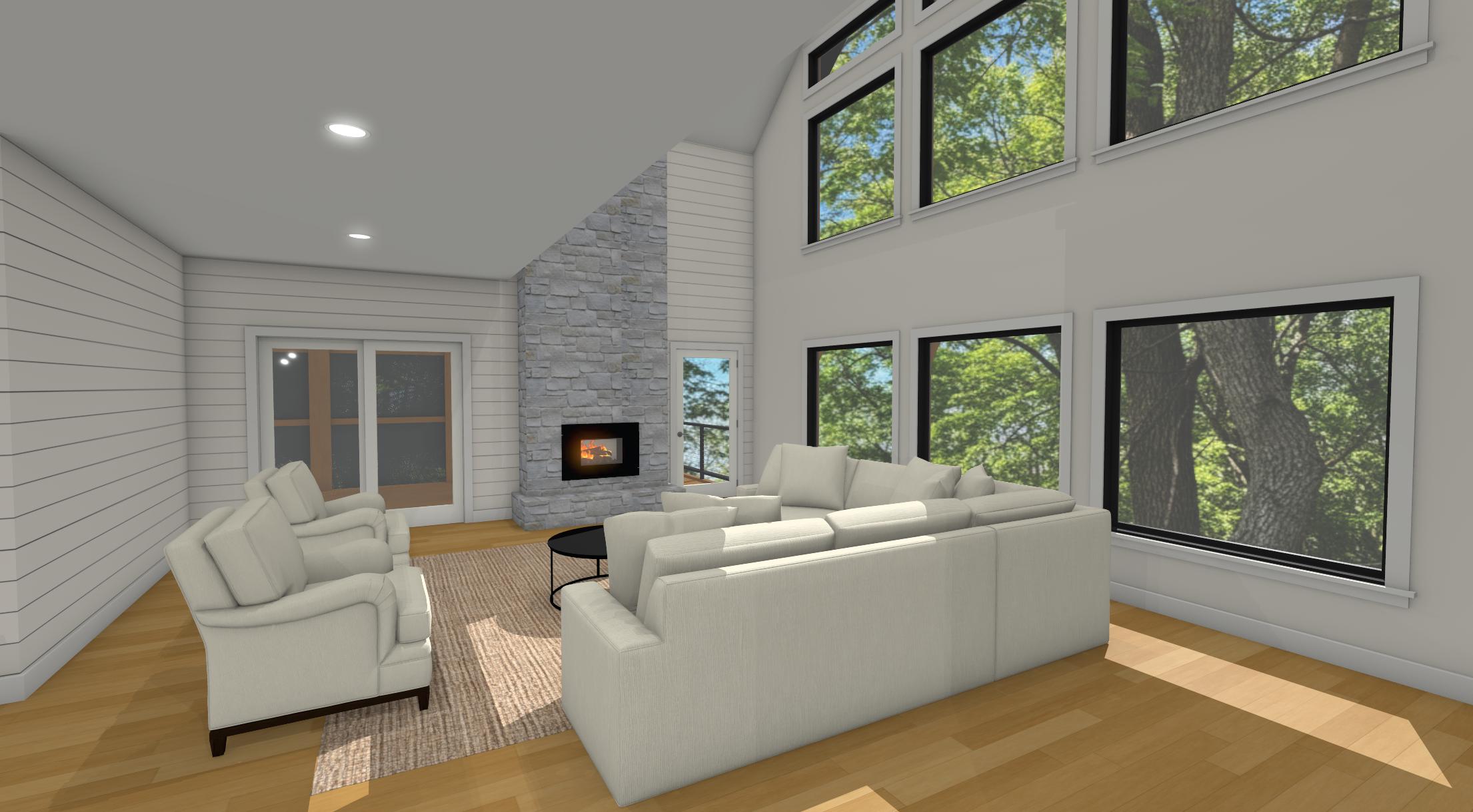 photorealistic rendering with transitional decor and natural lighting add more decor to the photo
