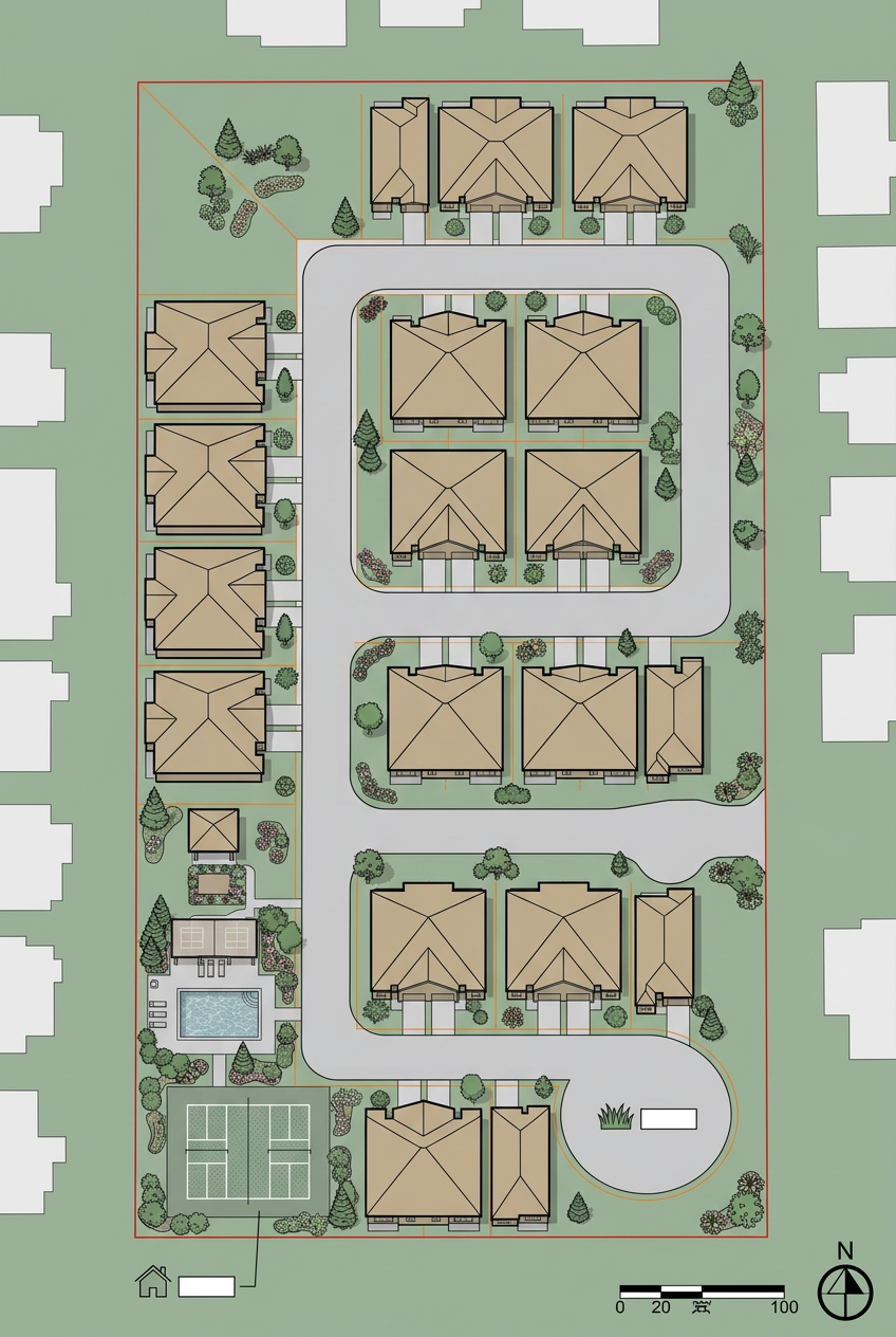 refine the existing render focus only on this correction the stucco wall at ground level must be clearly recessed behind the brick facade the stucco is currently in front this is incorrect move it back so it sits inside the brick opening create a clear depth approximately 15 cm setback add visible shadow lines where the brick meets the stucco to emphasize the recess the windows must also be inside this recessed plane important do not modify anything else do not change roof pavement materials or composition keep everything exactly the same except this correction photorealistic clean architectural detail