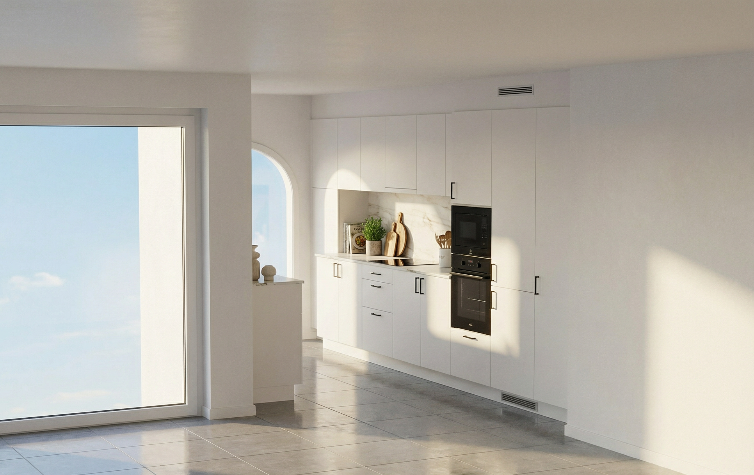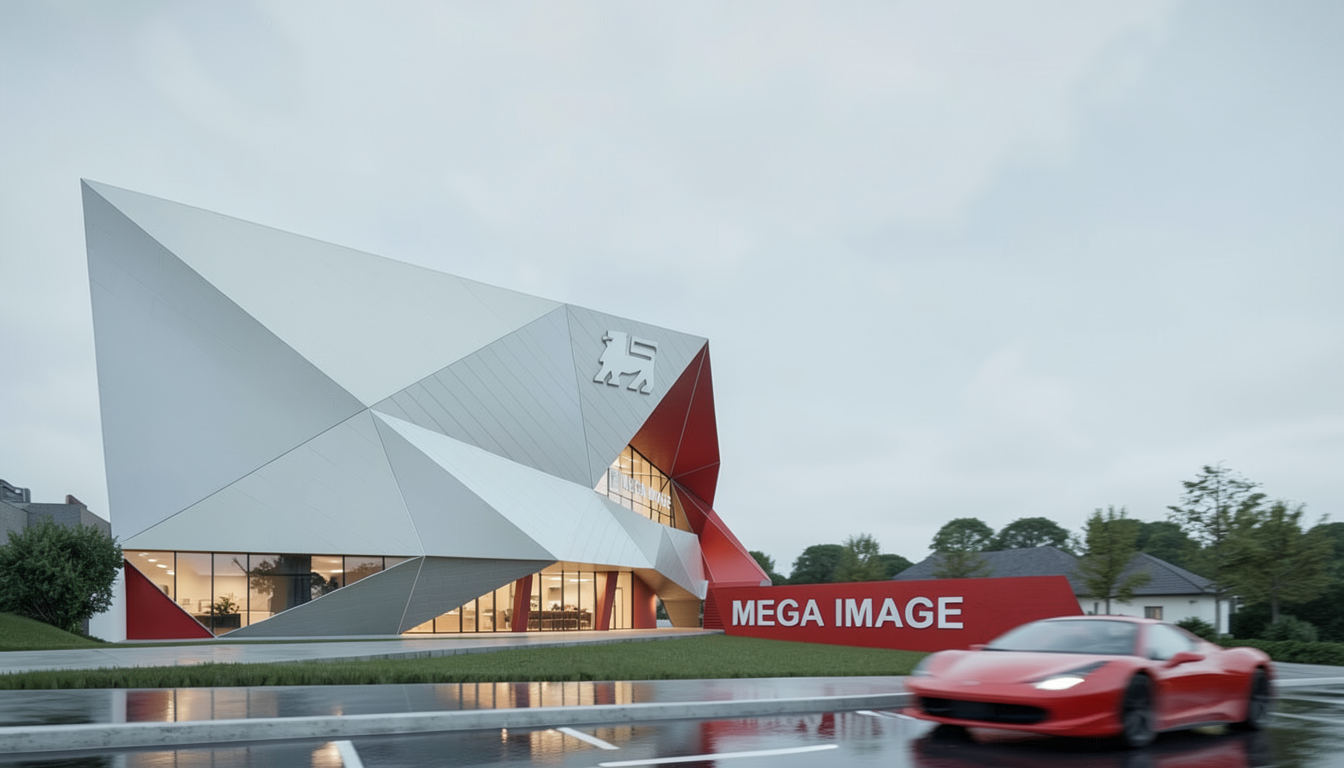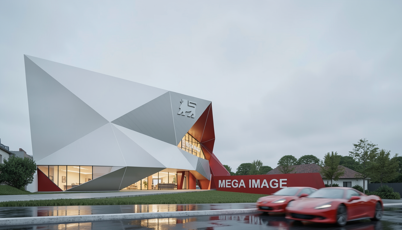 important preserve the existing geometry and the existing context exactly as provided do not modify alter reinterpret add remove scale or reshape any geometry do not change the site surroundings street layout neighboring buildings vegetation or context elements do not modify geometry scale proportions buildings road layout sidewalks or surrounding context in any way do not change text photorealistic architectural rendering clean and balanced contrast calm cinematic mood style contemporary european residential architecture minimalist premium understated do not alter the church color soft overcast noon atmosphere diffused natural daylight with subtle blue grey tones cinematic architectural mood large glass surfaces with realistic reflections soft mirror effect subtle environmental reflections of sky and surroundings wet pavement with smooth reflective surface soft light bounce and blurred reflections high dynamic range lighting realistic global illumination soft shadows calm and minimalist nordic mood photorealistic architectural visualization balanced exposure no harsh highlights add interior warm light do not modify text add motion blur to the carsdo not add people in the foregrounddo not alter the white lines from the pavementdo not alter the crosswalkdo not alter the reddo not alter the motion lines do not alter the facade material