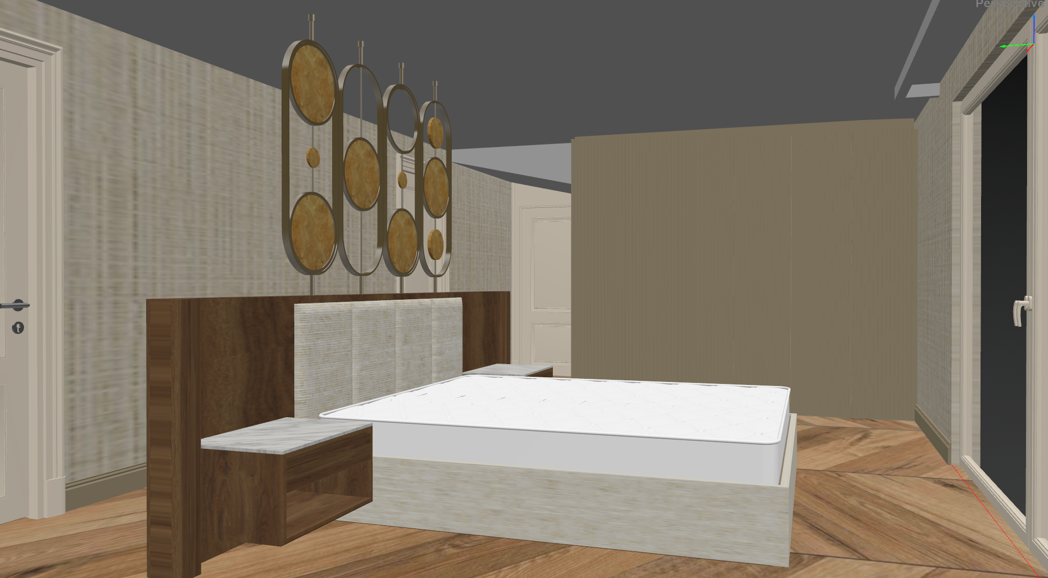 make it more realistic keep the colors the same have led lighting inside the nightstands doors should be light colored have bedding on the bed daylight should come from the window on the right have a wall panel with grout next to the bed doors should be the same light color