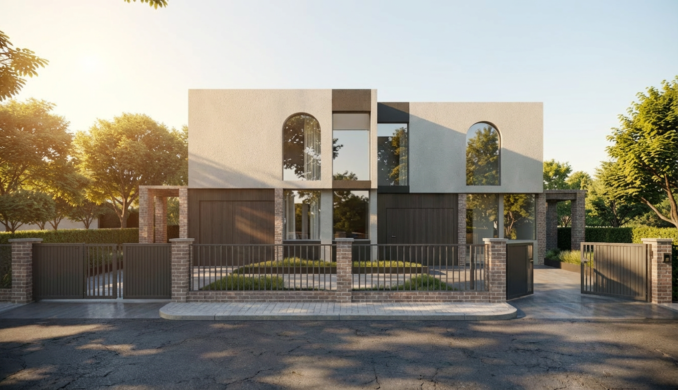 highly realistic architectural render of a modern aparthotel building located in cluj napoca romania integrated naturally into an urban context the facade features elegant contemporary design elements with a refined combination of white and warm beige ceramic cladding the first flool to have diferent material maybe a bej cermic facade the middle floor can be white cermaic and the last floor something darker use high quality ceramic textures with subtle reflections and natural imperfections the building should have clean lines balanced proportions and a sophisticated minimalist aesthetic include large windows with realistic glass reflections slim dark frames and soft interior lighting visible from inside lighting should be soft and natural preferably golden hour or late afternoon creating warm tones and soft shadows that enhance the beige and white facade use global illumination realistic shadows and physically accurate materials camera angle at street level slightly angled perspective to showcase depth and facade details ultra realistic rendering high resolution cinematic quality photorealistic textures subtle atmospheric effects