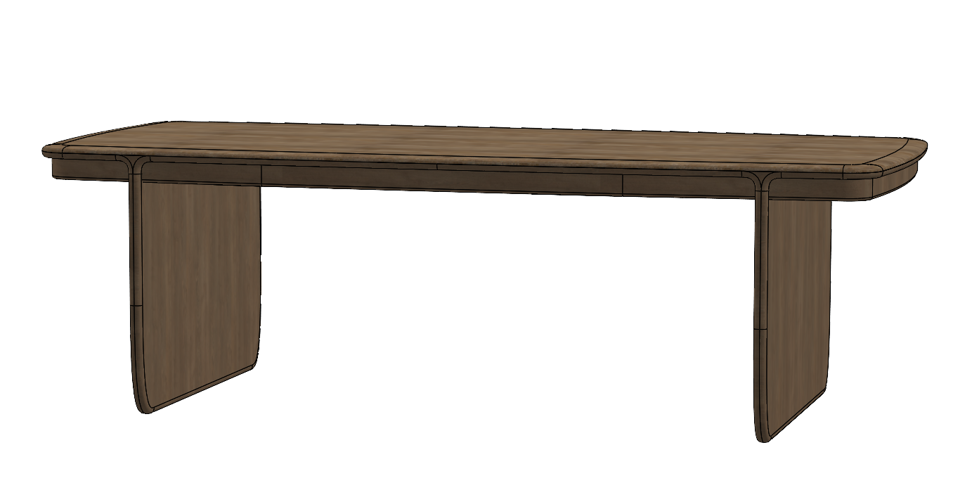 minimalism render a beautifully crafted wooden table with curved edges and modern design use rich mahogany brown for the table s surface with subtle wood grain texture the legs should be slightly darker walnut brown providing a sleek contrast surround the table with a warm softly lit minimalist room with beige walls and a light gray floor to enhance the tranquil atmosphere add soft shadows to give depth and dimension architecture