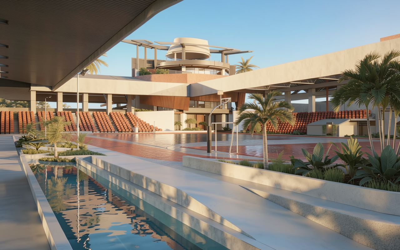 this villa is surrounded by a garden with trees grass flowers and people the weather is sunny with a few clouds there is a car in front of the garage keep the materials and colours of the house the same as in the original