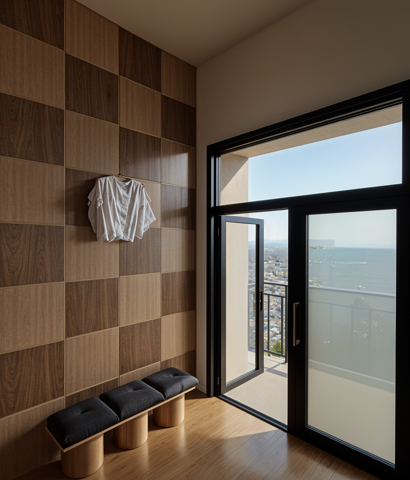 maintain geometry but generate a beautifully rendered image of an edge of an open air porte cochere and a garage door next to a wall with a dutch door with a light oyster fa ade featuring light navy blue window shutters columns have brick bases the roof is dark gray shingles has many exposed rafter ends and exposed rafters underneath and the frames around the windows and doors are crisp white surround the home with driveway and some brick pavers the sky is a clear bright blue creating a warm and inviting atmosphere the scene should be rendered with soft lighting capturing the tranquil ambiance of a peaceful suburban setting