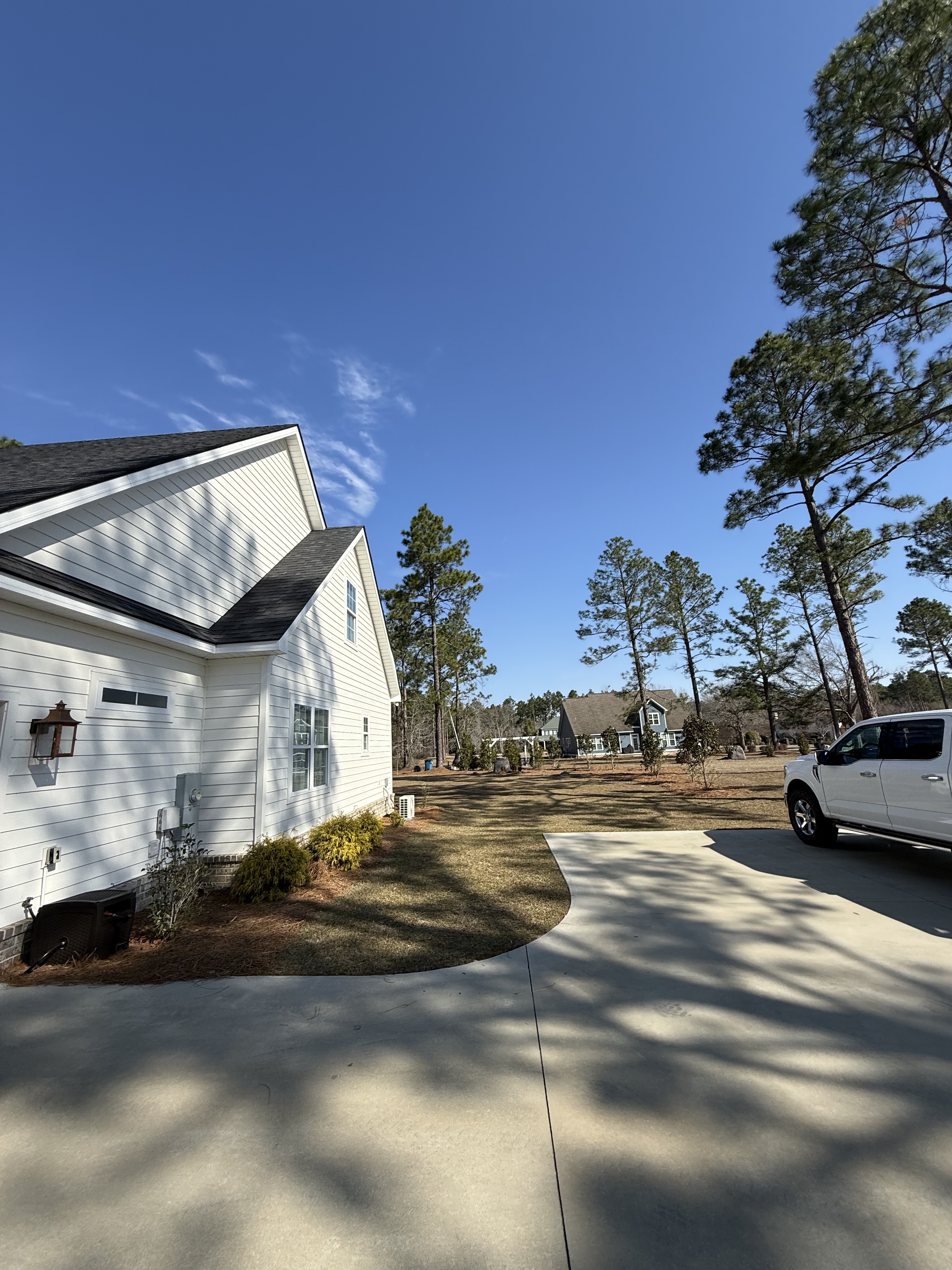 i want you to put a dark green black fence with an arch opening that connects to the back of the house as a back yard fence