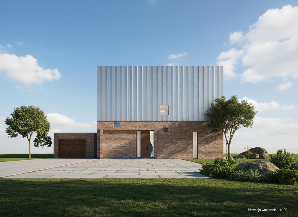 render a charming cozy house with a green exterior wall and white accents the roofs are rich brown with a subtle texture the windows and doors are framed in warm wood tones create a serene sunny atmosphere with soft natural light and a clear blue sky add lush greenery and vibrant flowers around the house for a welcoming feel