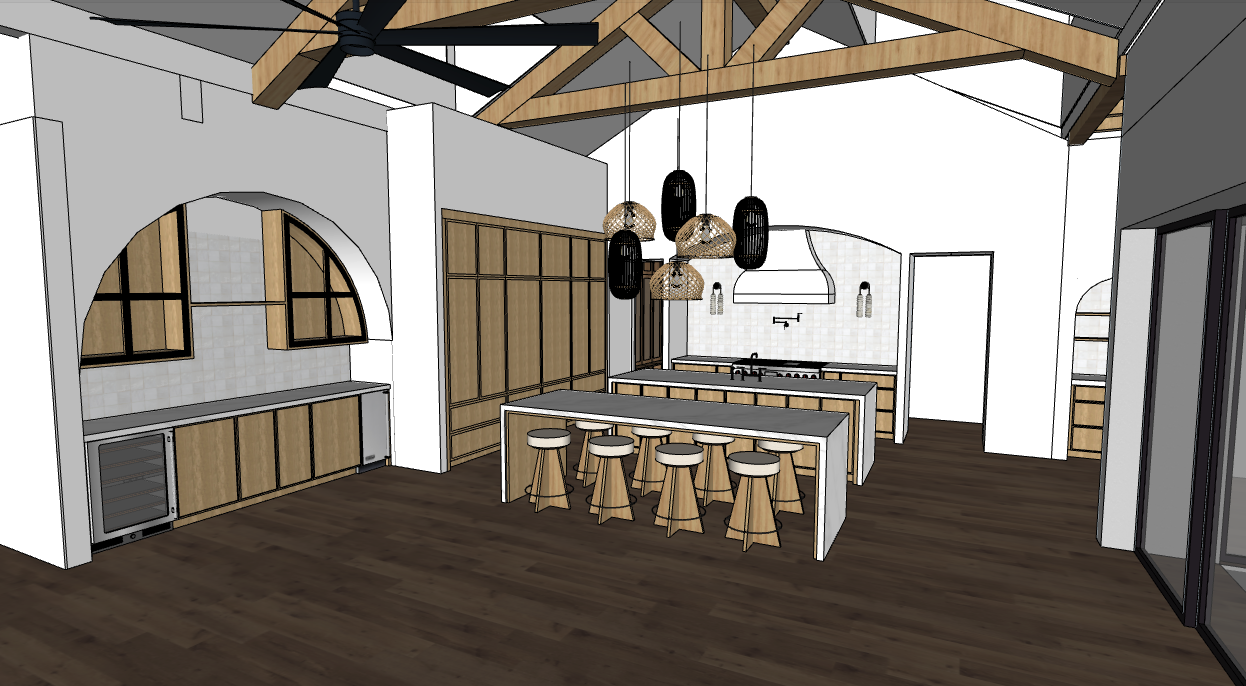 wood textures should be rift white oak with matte white oak flooring tile is a white zelig tile and add thin black cabinet hardware