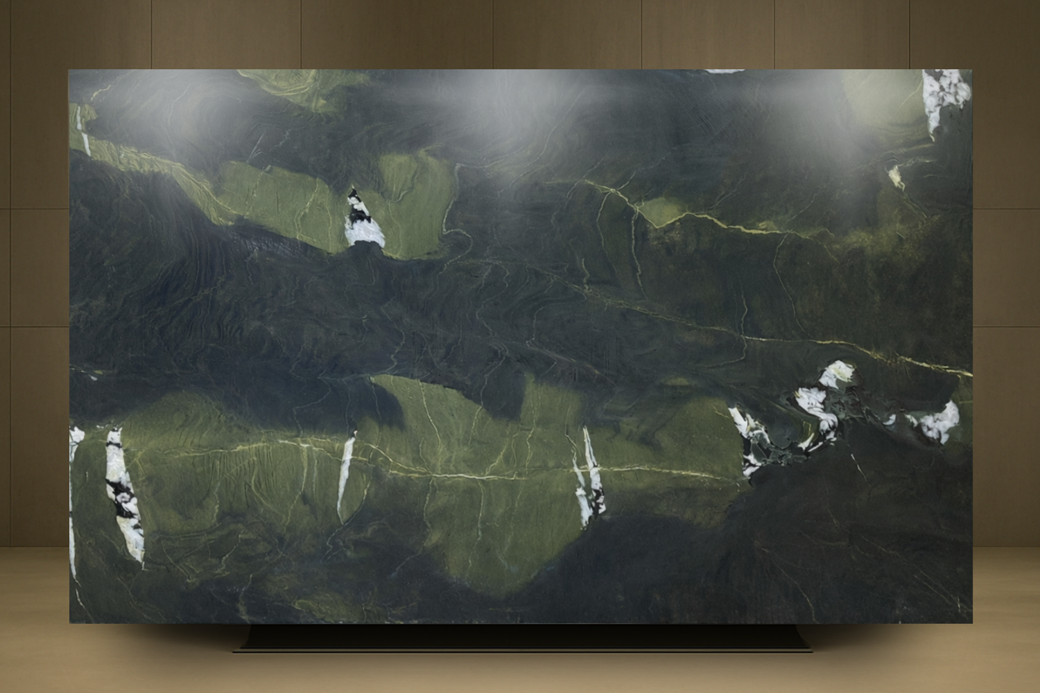 create a rich moody moodboard based on this slab of avocatus quartzite