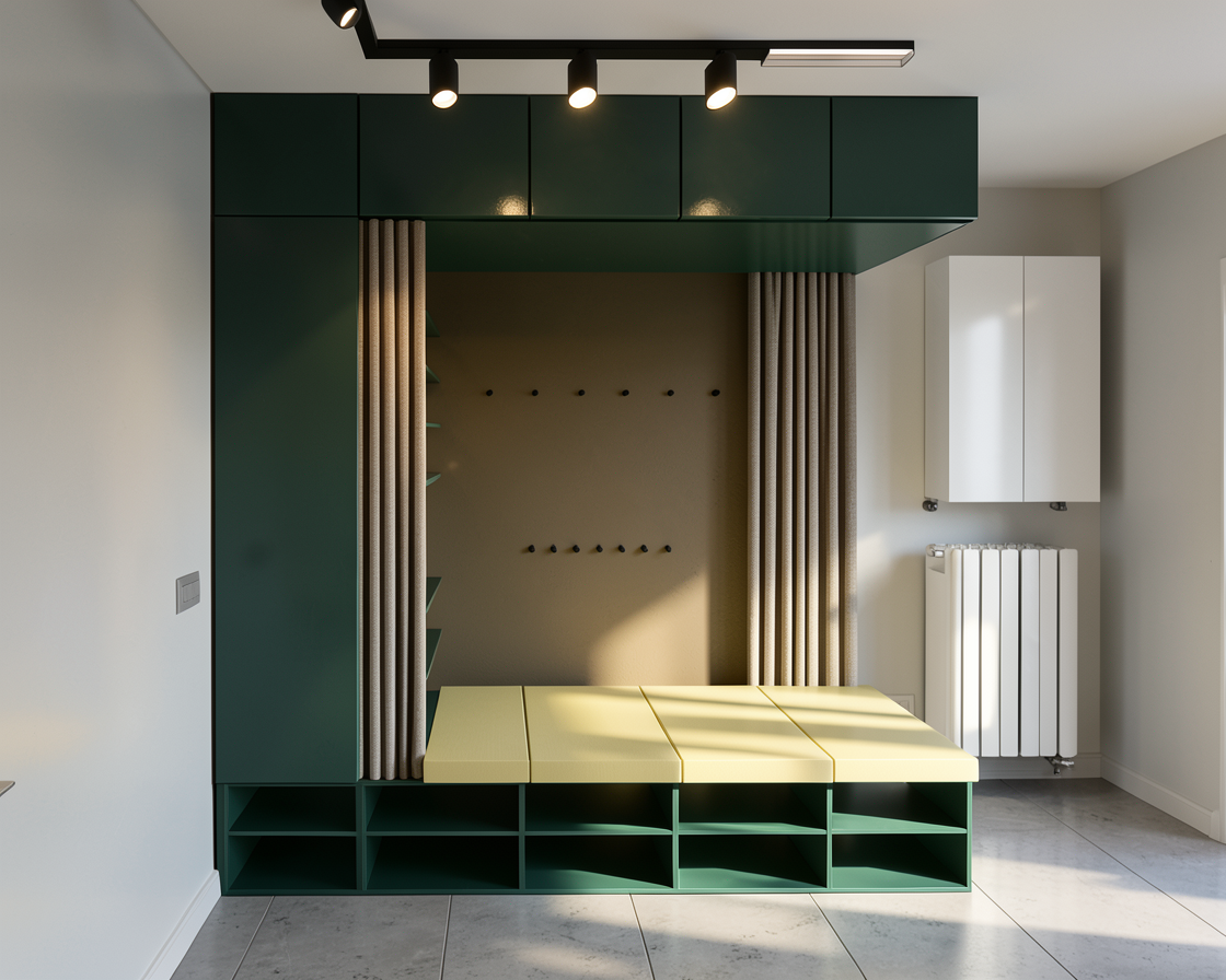 replace the metal railing on top of the corridor add recessed spot lights on the same positions