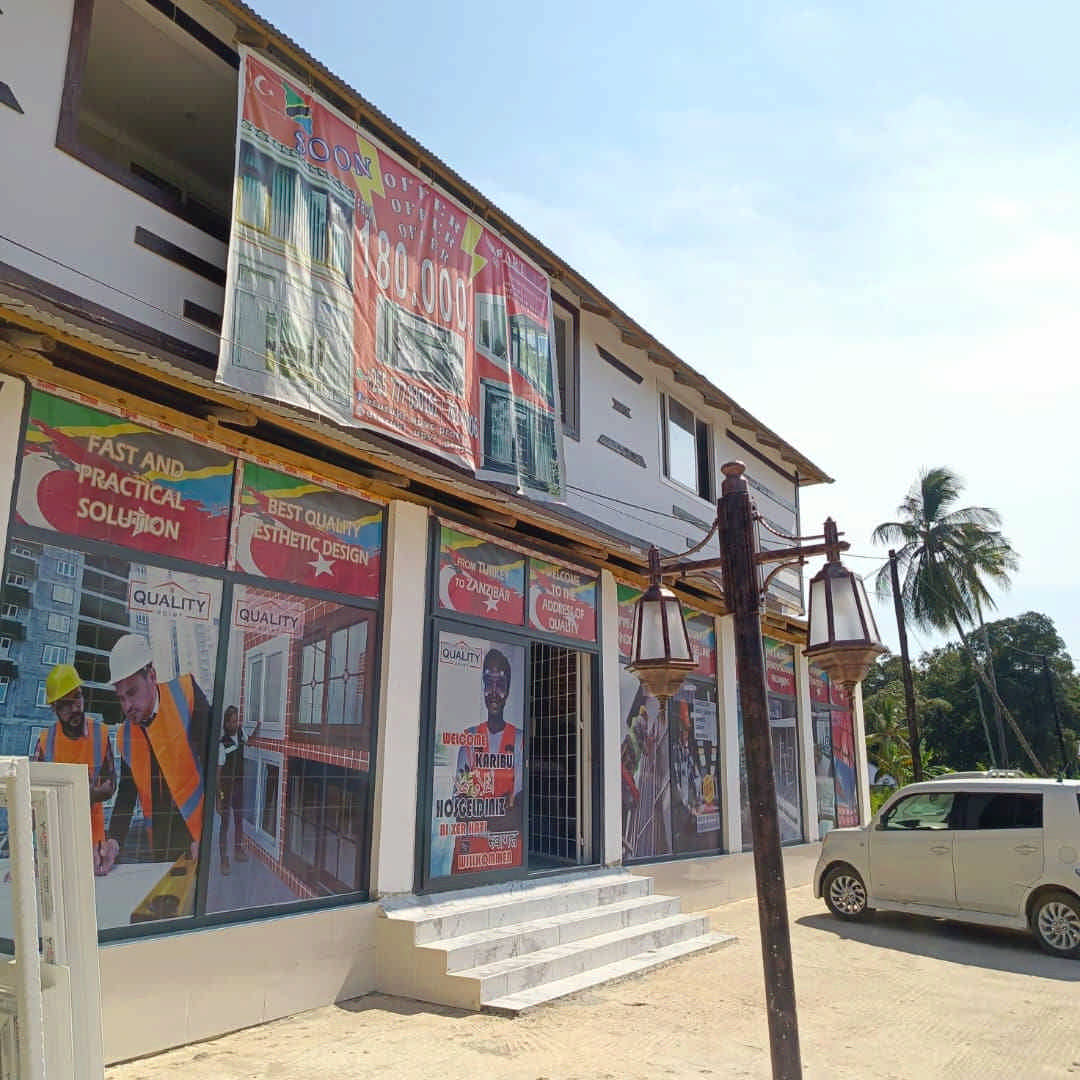 fish shops wood and glass facade traditional canopy africa greneery surounding architecture