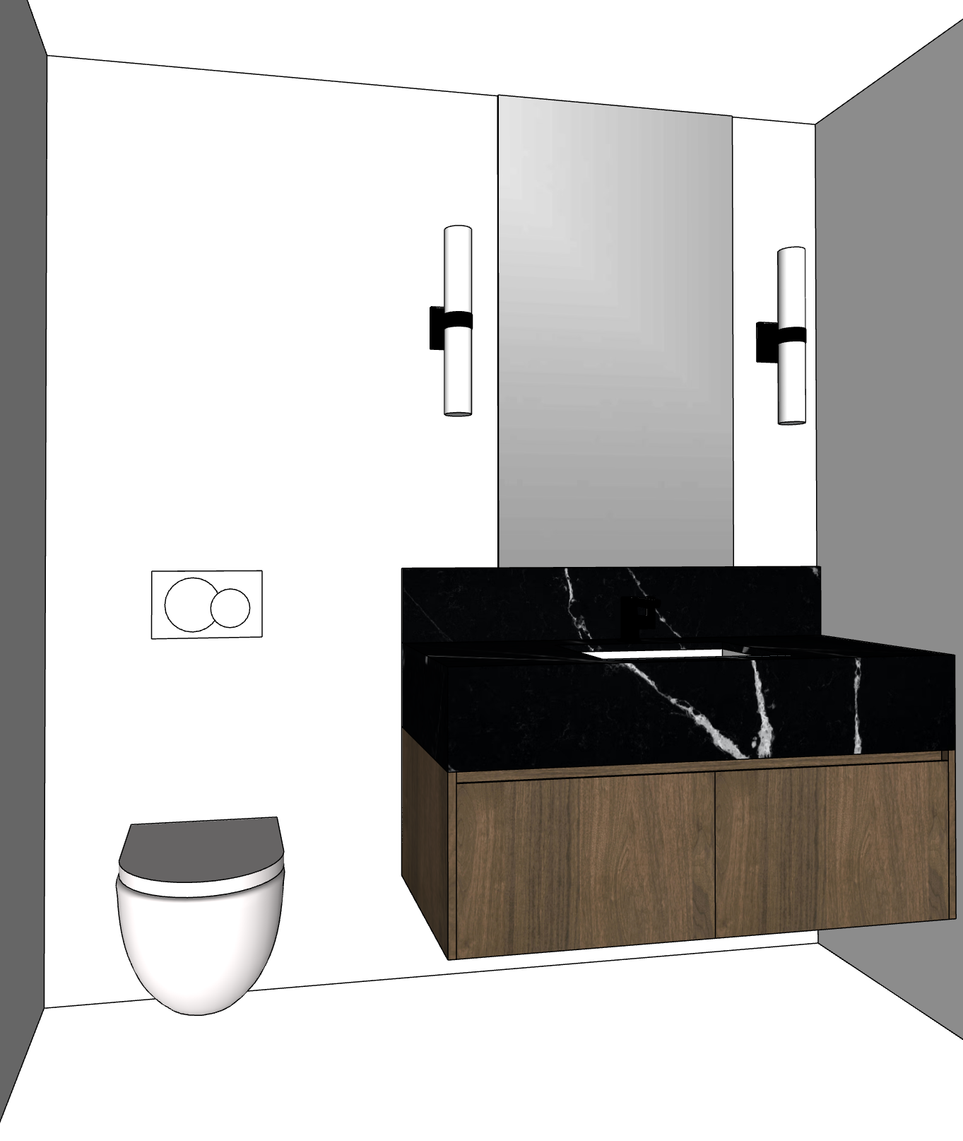 toilet and buttons for toilet is glossy white porcelain black faucet include an artwork above the toilet flush buttons