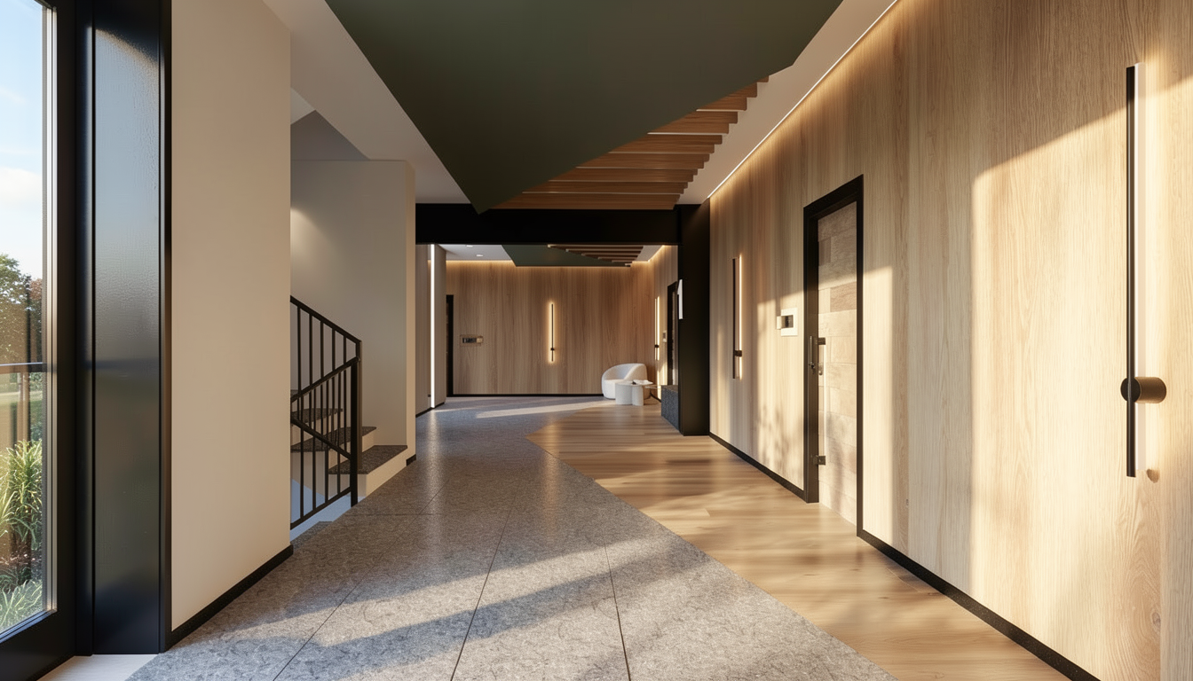 important preserve the existing geometry and the existing context exactly as provided do not modify alter reinterpret add remove scale or reshape any geometry do not change the site surroundings street layout neighboring buildings vegetation or context elements do not modify geometry scale proportions buildings road layout sidewalks or surrounding context in any way soft overcast evening atmosphere natural daylight with subtle blue grey tones cinematic architectural mood warm interior lighting 3000k glowing from inside creating strong contrast between cool exterior and warm interior large glass surfaces with realistic reflections soft mirror effect subtle environmental reflections of sky and surroundings wet pavement with smooth reflective surface soft light bounce and blurred reflections high dynamic range lighting realistic global illumination soft shadows calm and minimalist nordic mood photorealistic architectural visualization balanced exposure no harsh highlights