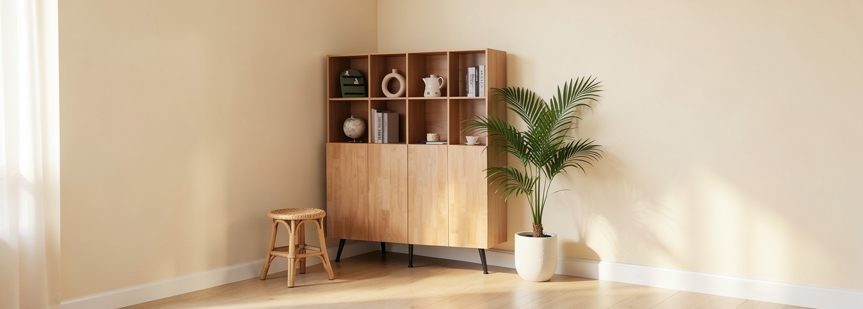 photorealistic 3d bird s eye view render of modern single story atelier house floor plan 20x12m orthographic top down perspective at 30 tilt based exactly on the provided reference image preserve all walls doors furniture positions corner sofa coffee table poufs long conference table with chairs kitchen island bed desks dimensions geometry structure and layout no changes or additions use pbr materials matte concrete floors smooth white interior walls large floor to ceiling glass walls in the right extension with subtle reflections and transparency flat green sedum roof wooden terrace decking with grain texture surrounding sloped green terrain with grass shrubs and subtle topography high key daylight from above soft shadows ultra realistic textures 8k resolution professional architectural visualization style