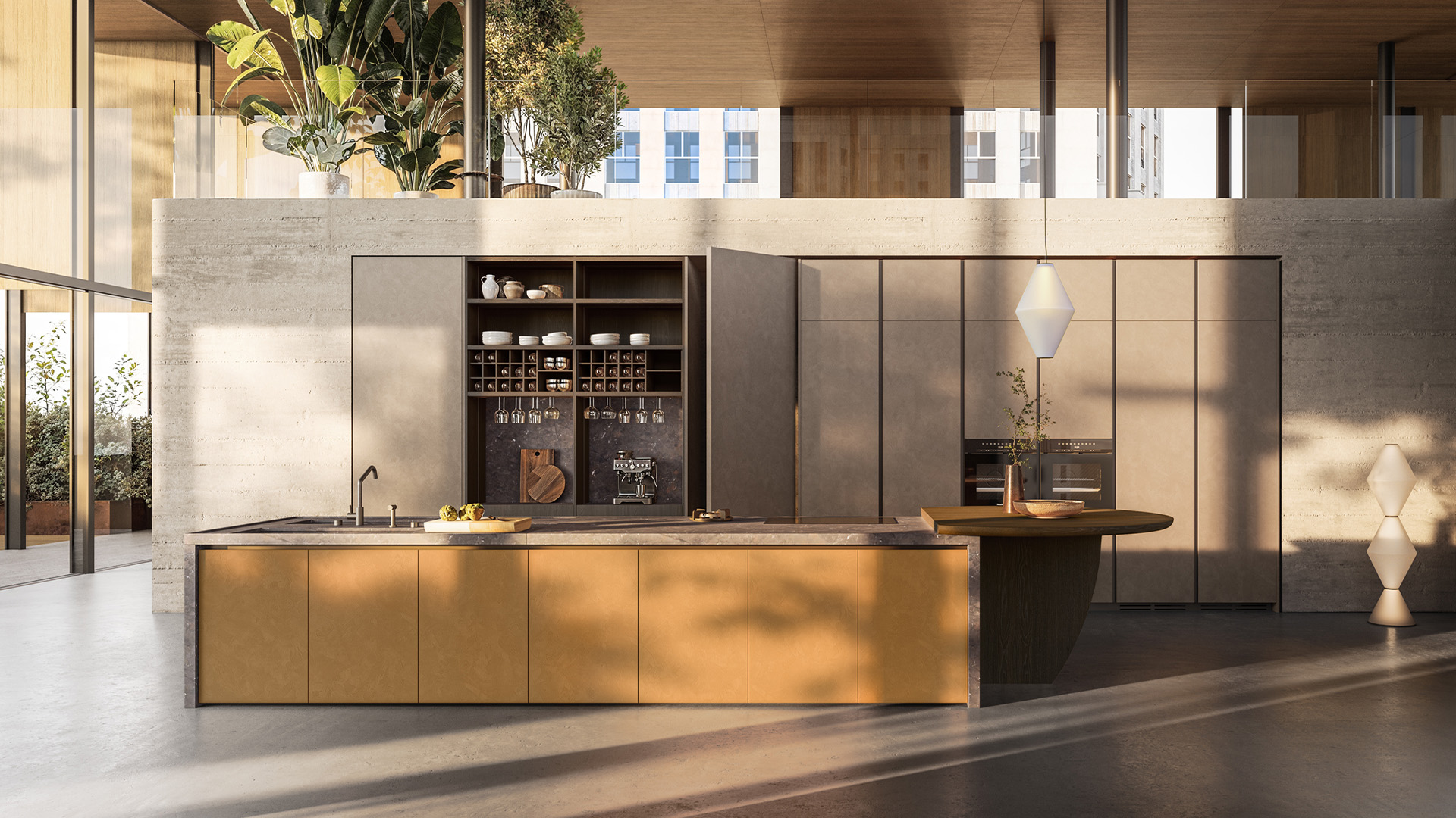 remove the round table and sink and faucet from the island change the kitchen island front to walnut canaletto material