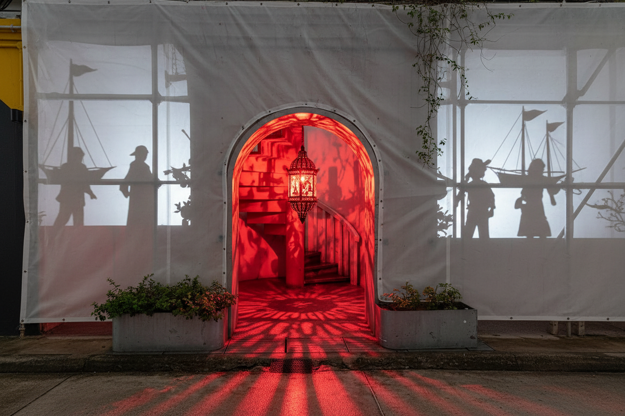 make outdoor black blinds in all windows and make then covered