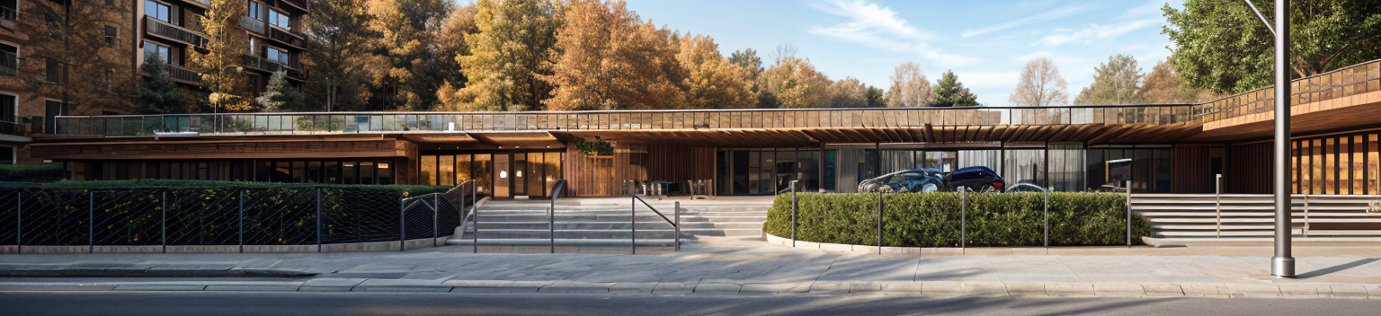 take the uploaded image the top part is a photo of a building the bottom part is a drawing of a facade apply the facade drawing onto the building in the photo exactly as shown ignore everything else do not change the surroundings or the building shape transform the combined image into a realistic architectural render keeping the drawing aligned as the building s new facade