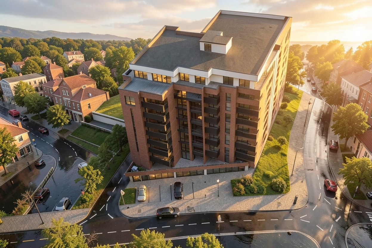 a manicured lawn layered flower beds low maintenance shrubs native plants stone pathway leading to the entrance