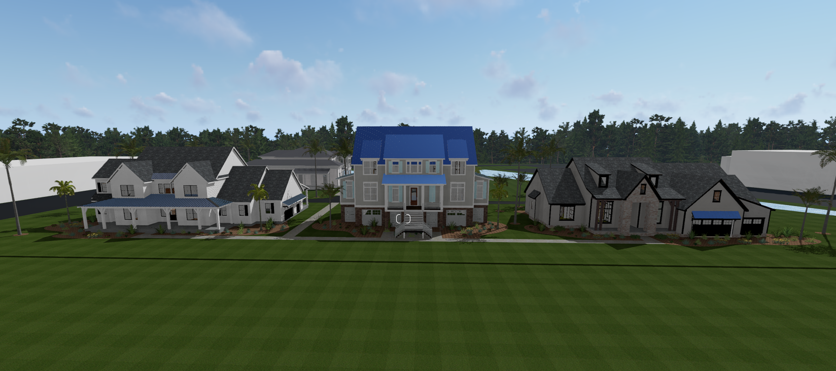make as photorealistic as possible while keeping textures the same as selection professional landscaping in a lightly wooded scene with good lighting match materials to plan
